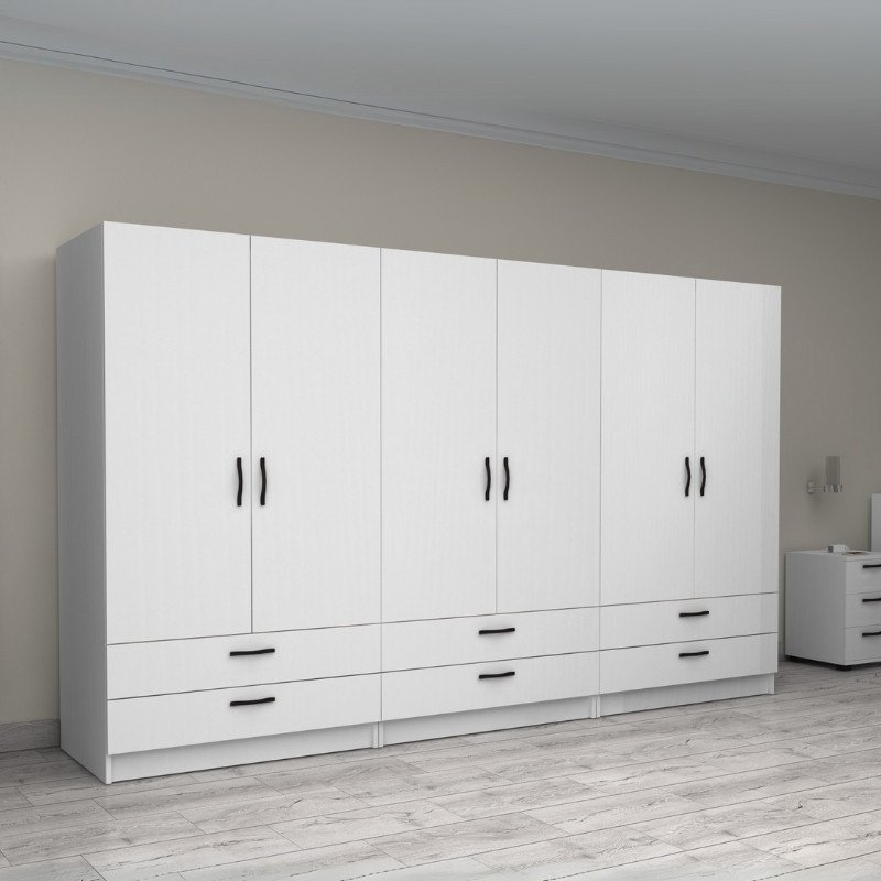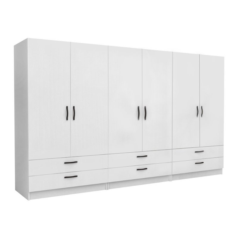 Ντουλάπα ρούχων Victoria Megapap εξάφυλλη με συρτάρια χρώμα λευκό 300x60x181εκ.