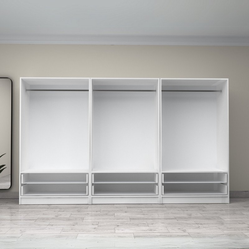 • Οι ντουλάπες μπορούν να στηθούν και ανεξάρτητα, ώστε να έχετε τρεις δίφυλλες ντουλάπες.