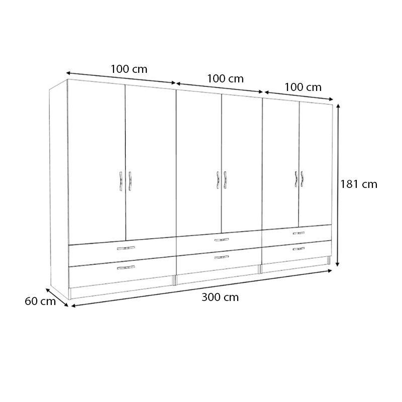 • Διαστάσεις ντουλάπας: Μήκος 300 x Βάθος 60 x Ύψος 181 εκ.