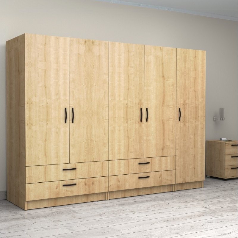 Ντουλάπα ρούχων Victoria Megapap πεντάφυλλη με συρτάρια χρώμα φυσικό οξιάς 250x60x181εκ.
