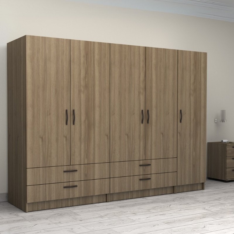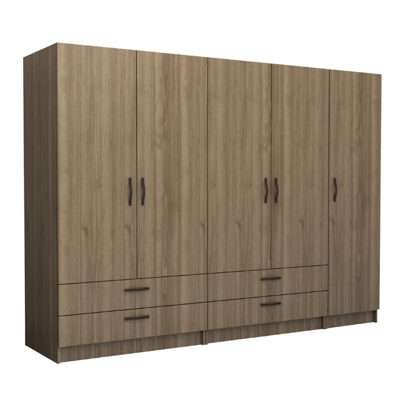 Ντουλάπα ρούχων Victoria Megapap πεντάφυλλη με συρτάρια χρώμα καρυδί 250x60x181εκ.