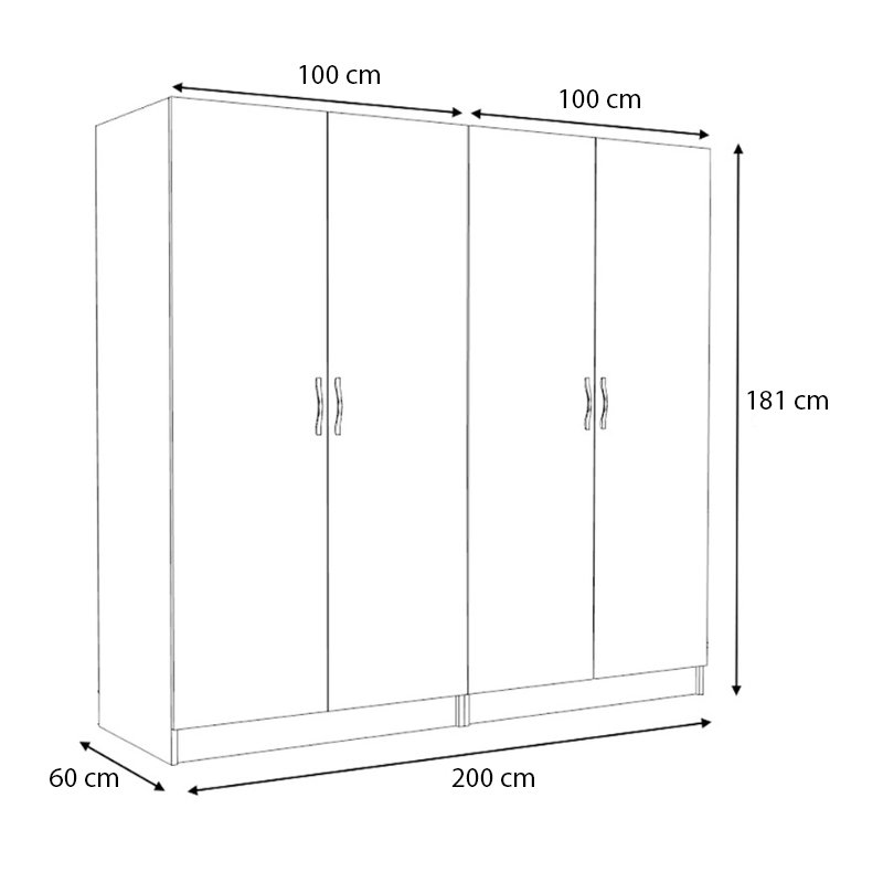 • Διαστάσεις ντουλάπας: Μήκος 200 x Βάθος 60 x Ύψος 181 εκ.