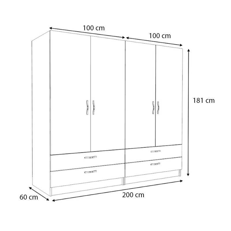 - Διαστάσεις ντουλάπας: Μήκος 200 x Βάθος 60 x Ύψος 181 εκ.