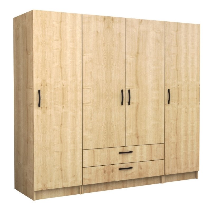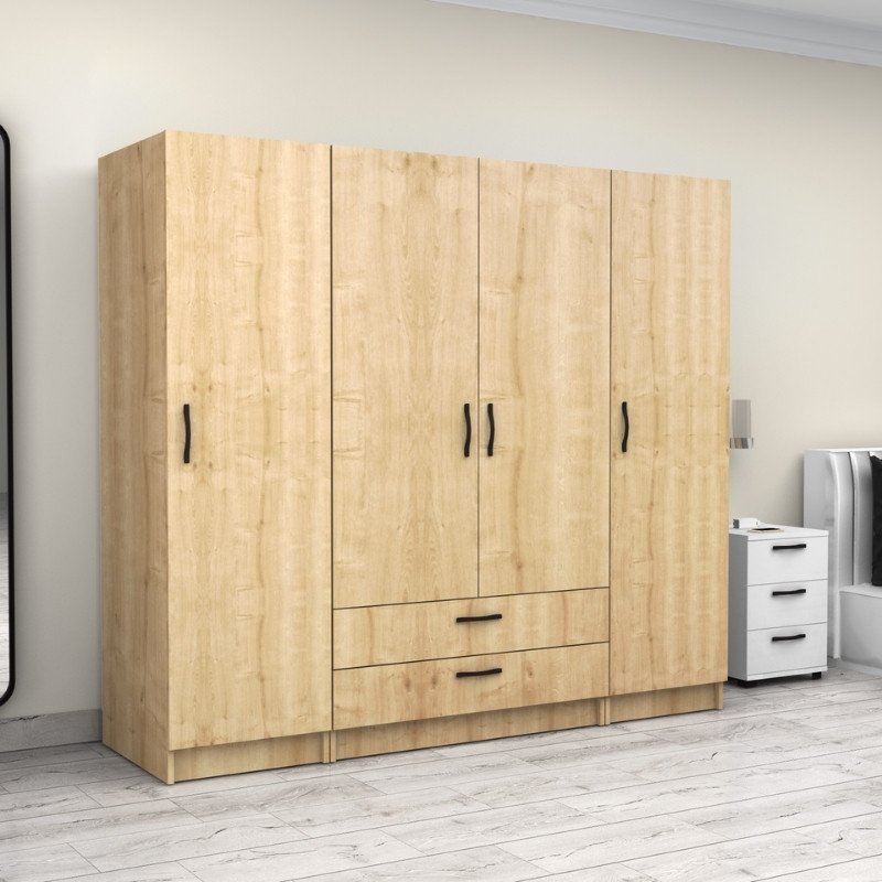 Ντουλάπα ρούχων Victoria Megapap τετράφυλλη με συρτάρια χρώμα φυσικό οξιάς 200x60x181εκ.