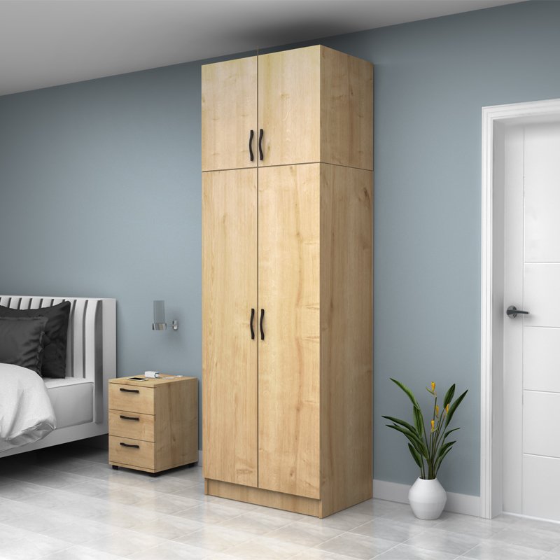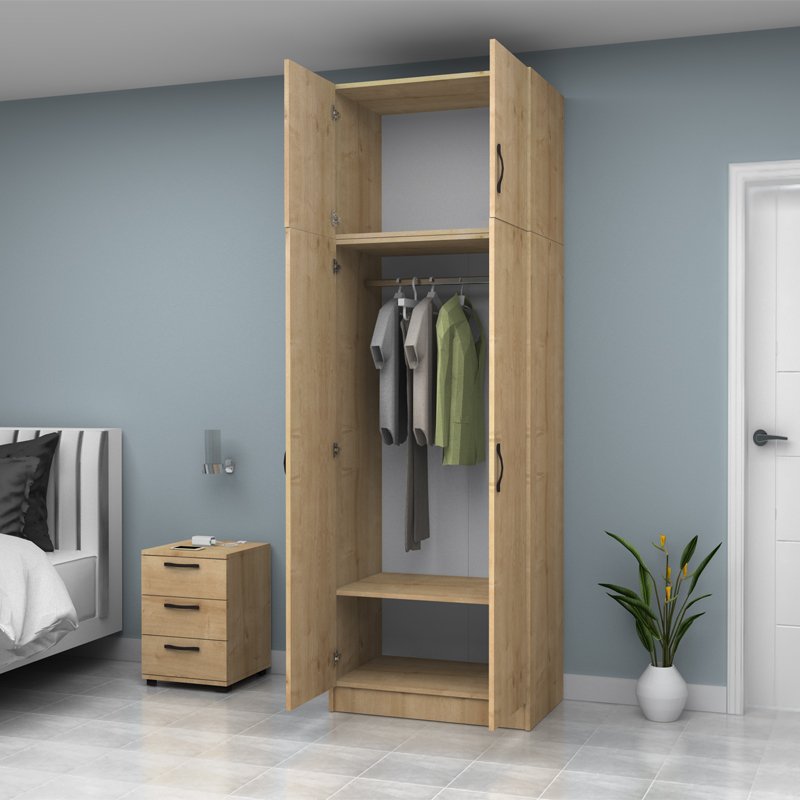 Ντουλάπα ρούχων Vivian Megapap δίφυλλη με πατάρι χρώμα φυσικό οξιάς 80×51,8×240εκ.