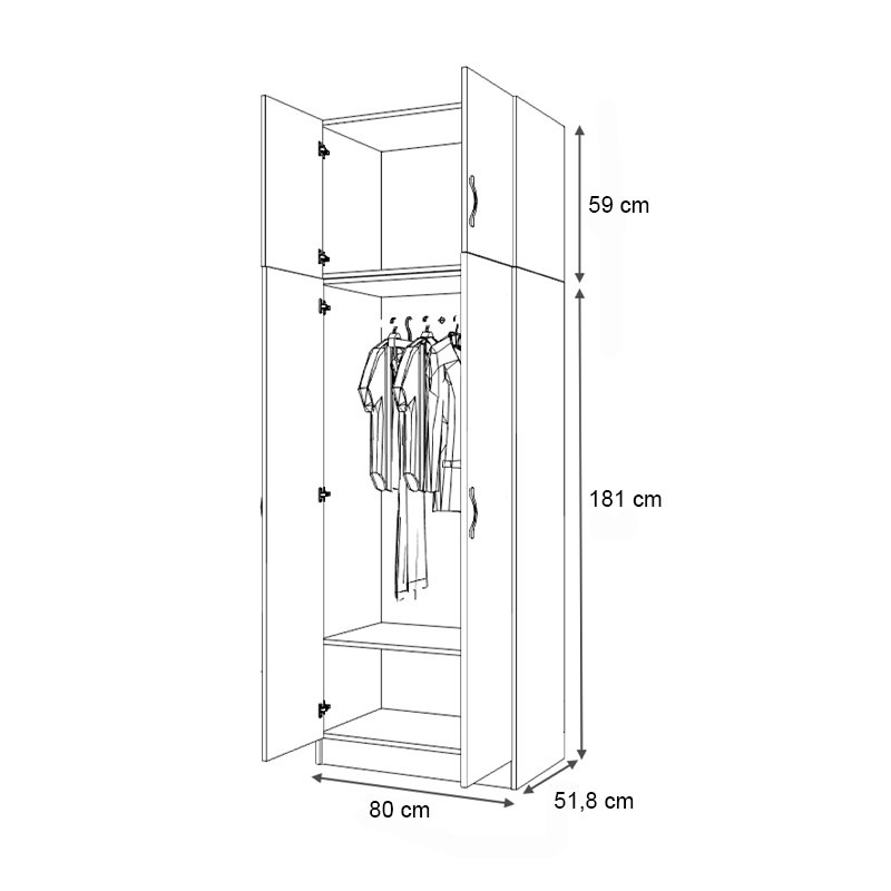 - Διαστάσεις ντουλάπας: Μήκος 80 x Βάθος 51,8 x Ύψος 181 εκ.