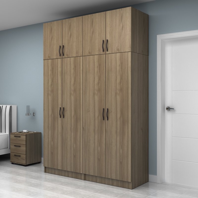 Ντουλάπα ρούχων Vivian Megapap τετράφυλλη με πατάρι χρώμα καρυδί 160×51,8×240εκ.