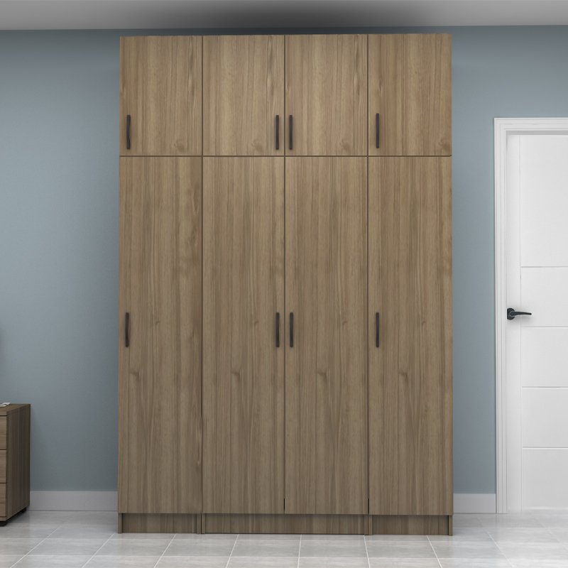 Ντουλάπα ρούχων Vivian Megapap τετράφυλλη με πατάρι χρώμα καρυδί 160×51,8×240εκ.