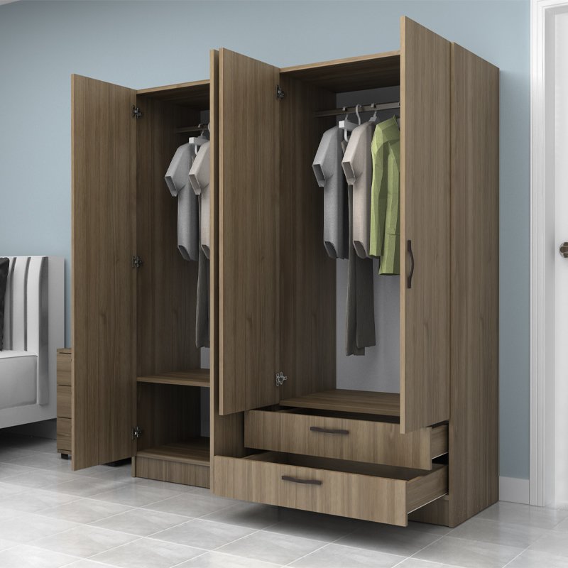 Ντουλάπα ρούχων Vivian Megapap τετράφυλλη με συρτάρια χρώμα καρυδί 160×51,8×181εκ.