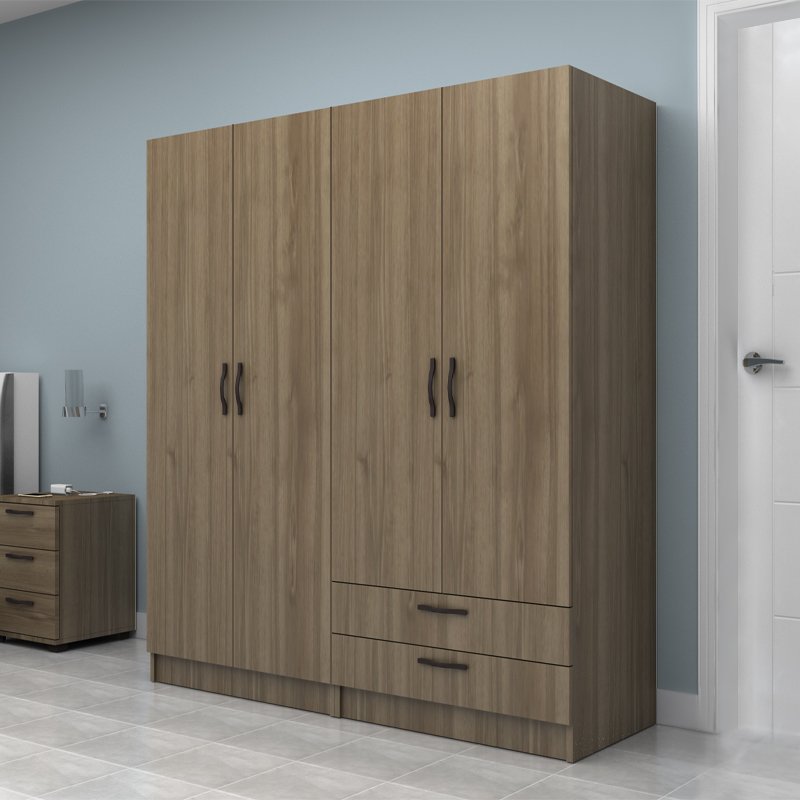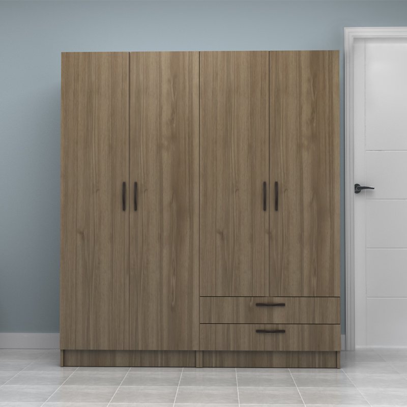 Ντουλάπα ρούχων Vivian Megapap τετράφυλλη με συρτάρια χρώμα καρυδί 160×51.8×181εκ.