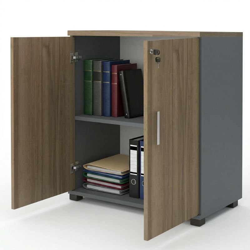 Ντουλάπι γραφείου με κλειδαριά επαγγελματικό Venturo Megapap χρώμα ανθρακί – καρυδί 80x40x80εκ.