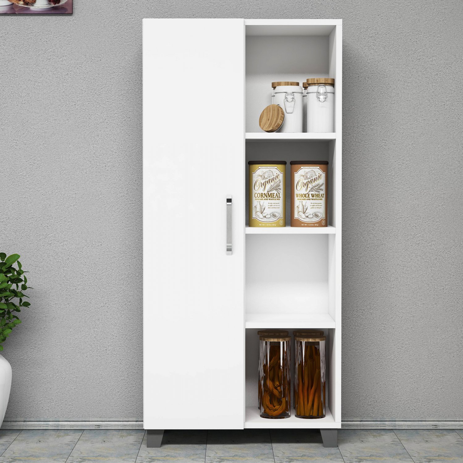 Το συγκεκριμένο προϊόν είναι ένα πρακτικό έπιπλο αποθήκευσης με πρωτοποριακό σχεδιασμό, καθώς προσφέρει και κλειστό ντουλάπι με ράφια αλλά και ανοιχτά ράφια για εργονομική κατανομή των αντικειμένων σας.