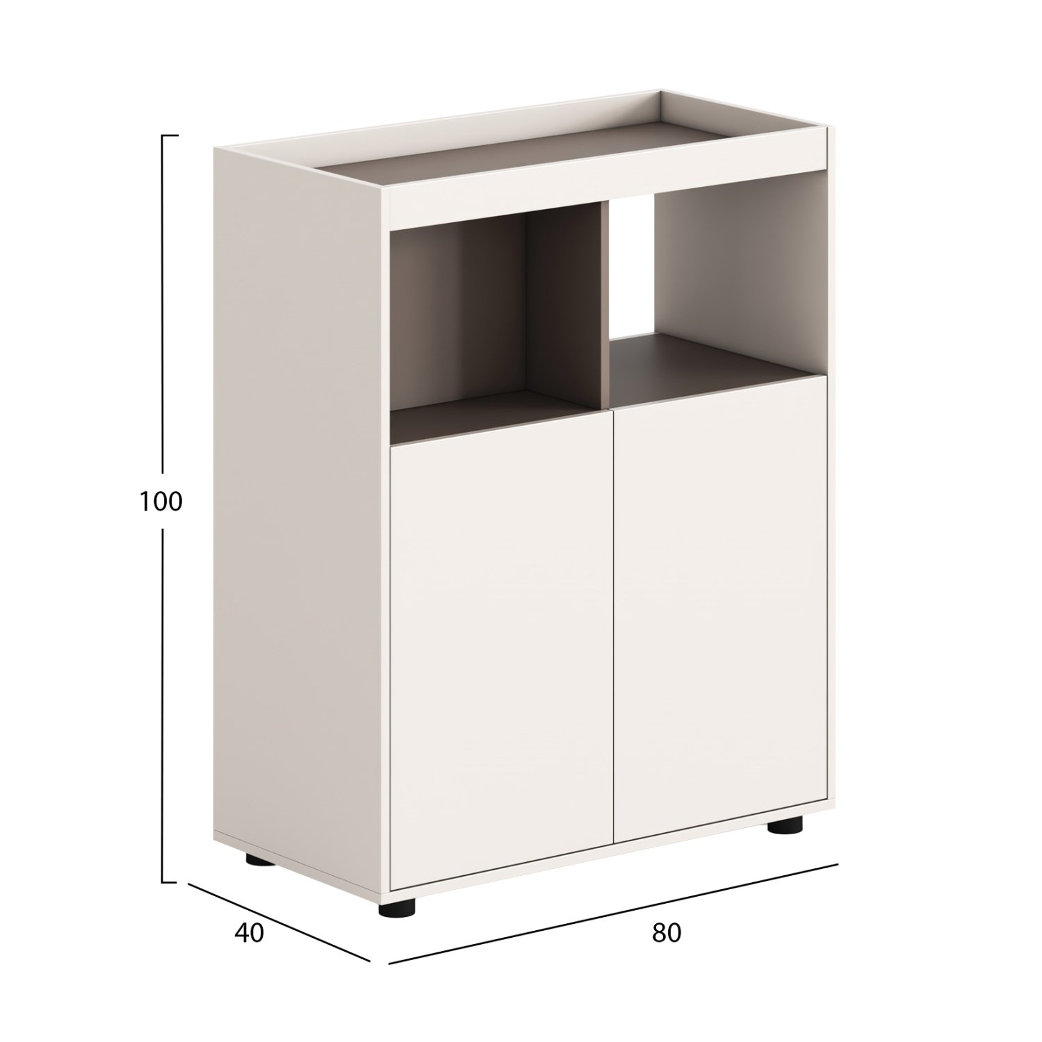 Το κοντό ντουλάπι βιβλιοθήκη NEWLINE αποτελεί μια πρακτική και καλαίσθητη λύση αποθήκευσης για γραφεία και επαγγελματικούς χώρους. Ο συνδυασμός κρεμ μελαμίνης με ανοιχτό καφέ δημιουργεί ένα φωτεινό και σύγχρονο αποτέλεσμα που ενσωματώνεται εύκολα σε κάθε γραφειακό περιβάλλον.