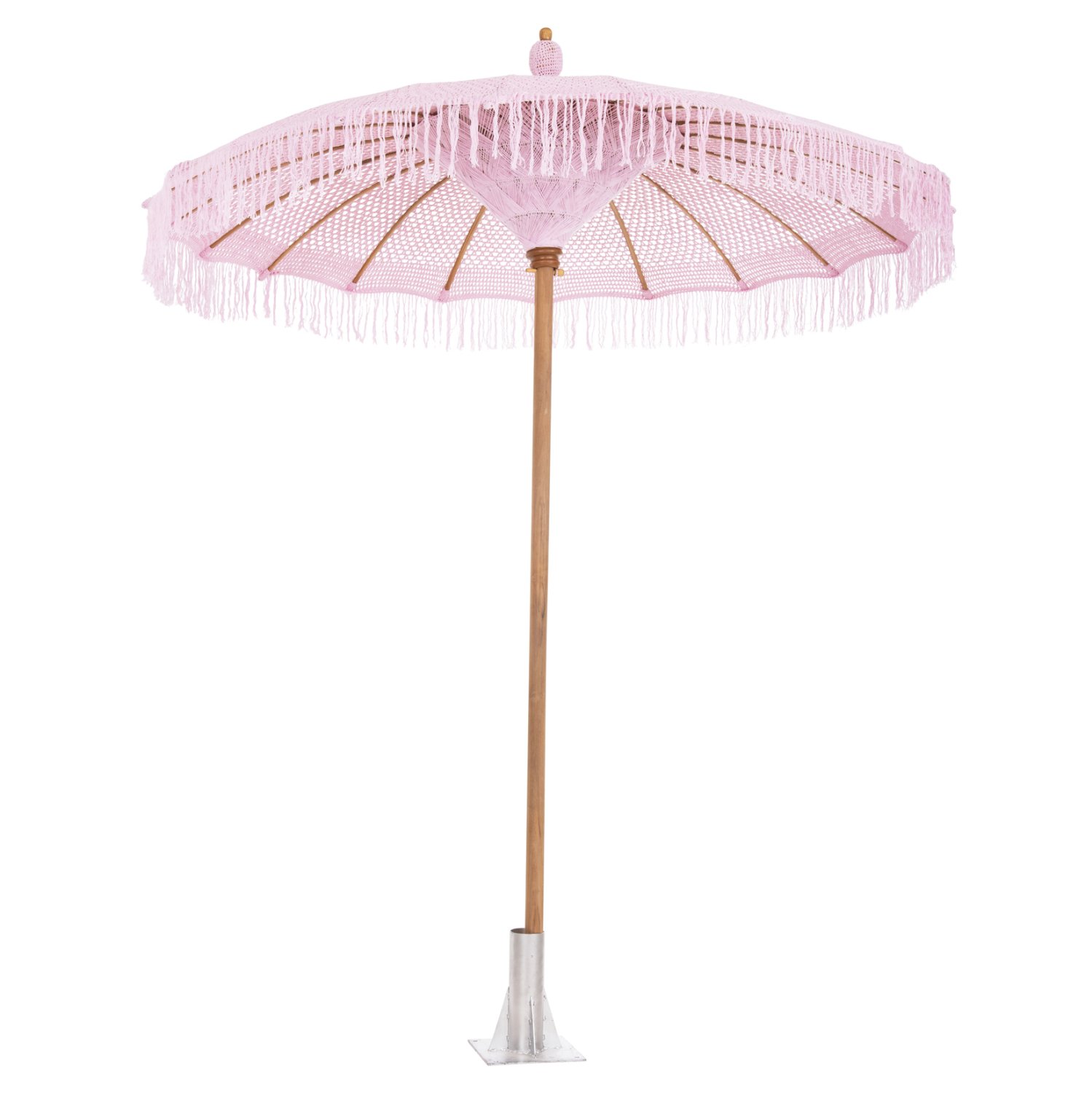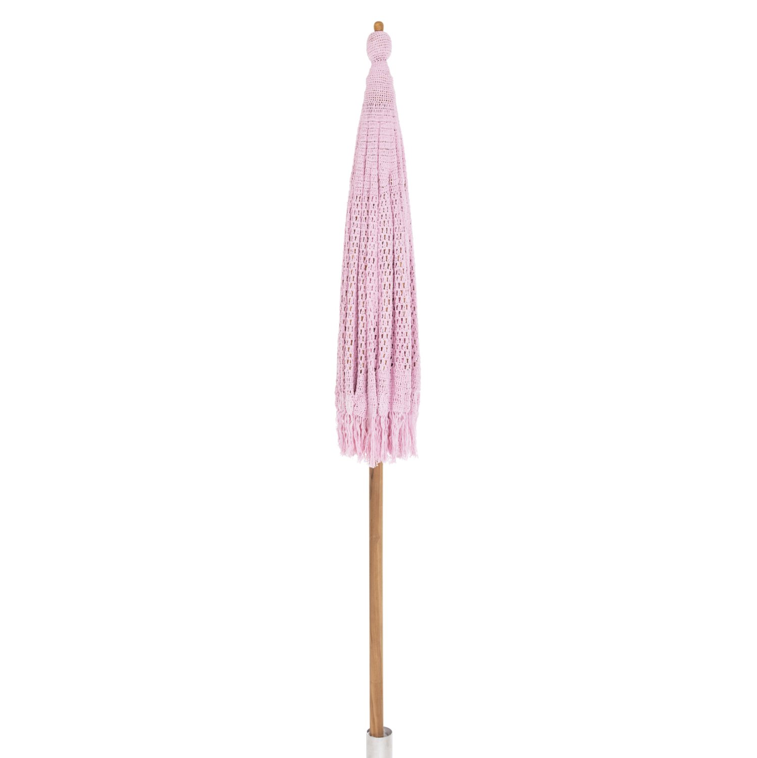 Η ομπρέλα πολυτελείας ΗΜ6035.04 είναι πραγματικά πανέμορφη. Ο στύλος της είναι από μασίφ ξύλο ΤΕΑΚ ενώ τα «μπράτσα» της ομπρέλας είναι από ξύλο BAMBOO. Το ιδιαίτερο χαρακτηριστικό, όμως, αυτής της εκπληκτικής ομπρέλας είναι ότι το σκίαστρό της είναι φτιαγμένο από μακραμέ σε ΡΟΖ χρώμα. Μια ομπρέλα που μπορεί να χρησιμοποιηθεί με πολλούς τρόπους κυρίως σε επαγγελματικούς χώρους και να προσφέρει με τις διαστάσεις της σκίαση με…στυλ!
