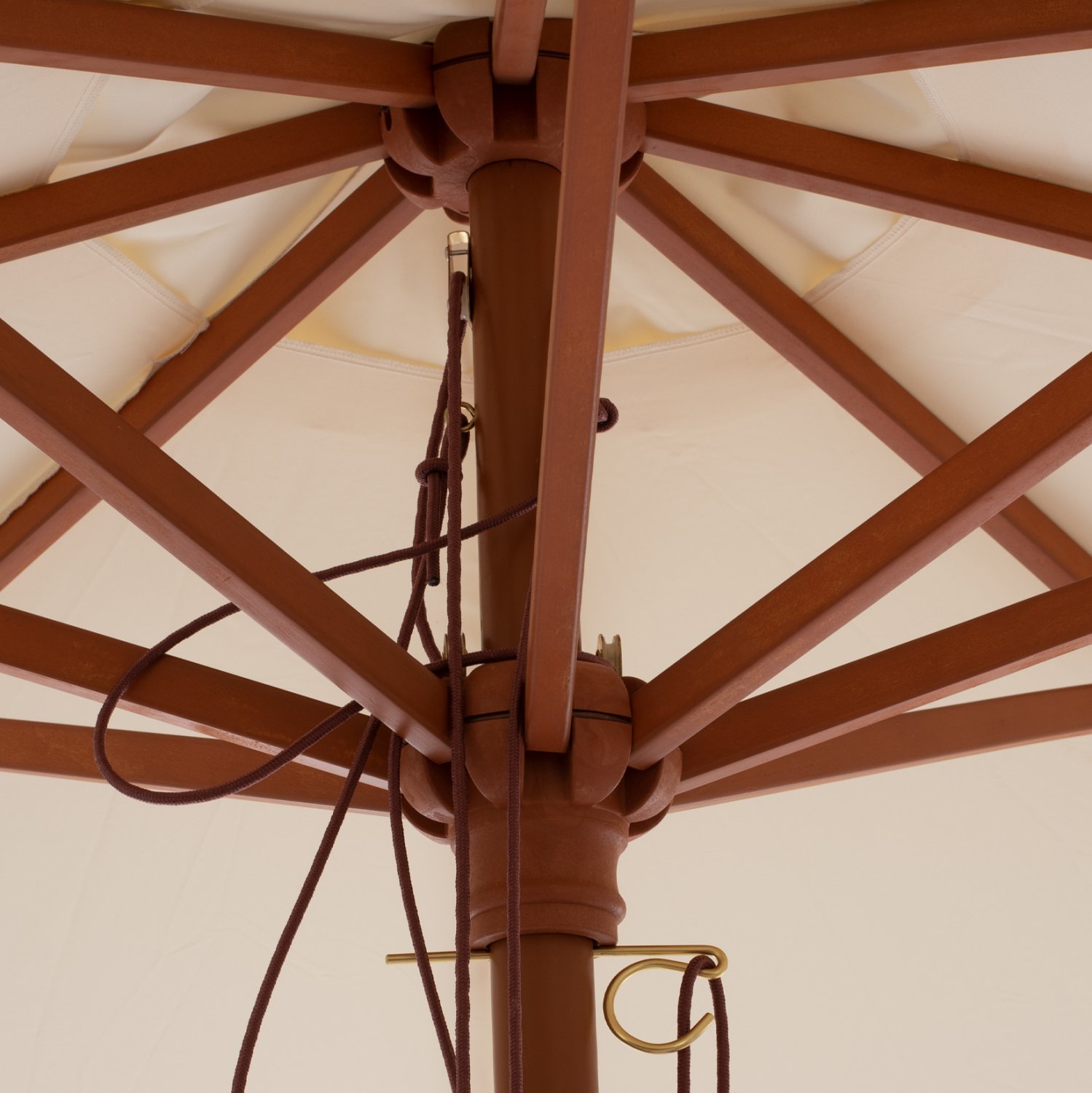 Ο στύλος της ομπρέλας είναι από μασίφ σκληρό ξύλο. Όταν αναφερόμαστε σε μασίφ, εννοούμε τα ξύλα που κατασκευάζονται ολοκληρωτικά από τον κορμό δέντρου. Το μασίφ είναι η πιο ακριβή επιλογή σε είδος ξύλου αλλά ξεχωρίζει για την διαχρονική αισθητική του.