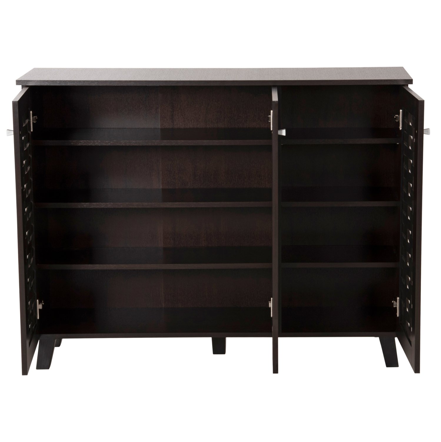 Σας παρουσιάζουμε την παπουτσοθήκη-ντουλάπι μελαμίνης PRODY σε WENGE χρώμα. Πρόκειται για ένα ντουλάπι με 2 ξεχωριστούς χώρους με 4 ράφια αποθήκευσης, και κλείνει με 3 πόρτες με μεταλλικά κυβάκια χερούλια. Μια διπλή πόρτα για τον μεγαλύτερο χώρο, και μια μονή πόρτα για τον μικρότερο χώρο. Το χαρακτηριστικό είναι ότι το κάθε επίπεδο και στους δύο χώρους, έχει διαφορετικό ύψος για να σας βοηθάει να τακτοποιείτε τα παπούτσια σας ανάλογα με το ύψος τους. Σκοπός μας είναι να σας βοηθήσουμε να οργανώσετε και να βελτιώσετε με τον καλύτερο δυνατό τρόπο οτιδήποτε θελήσετε.