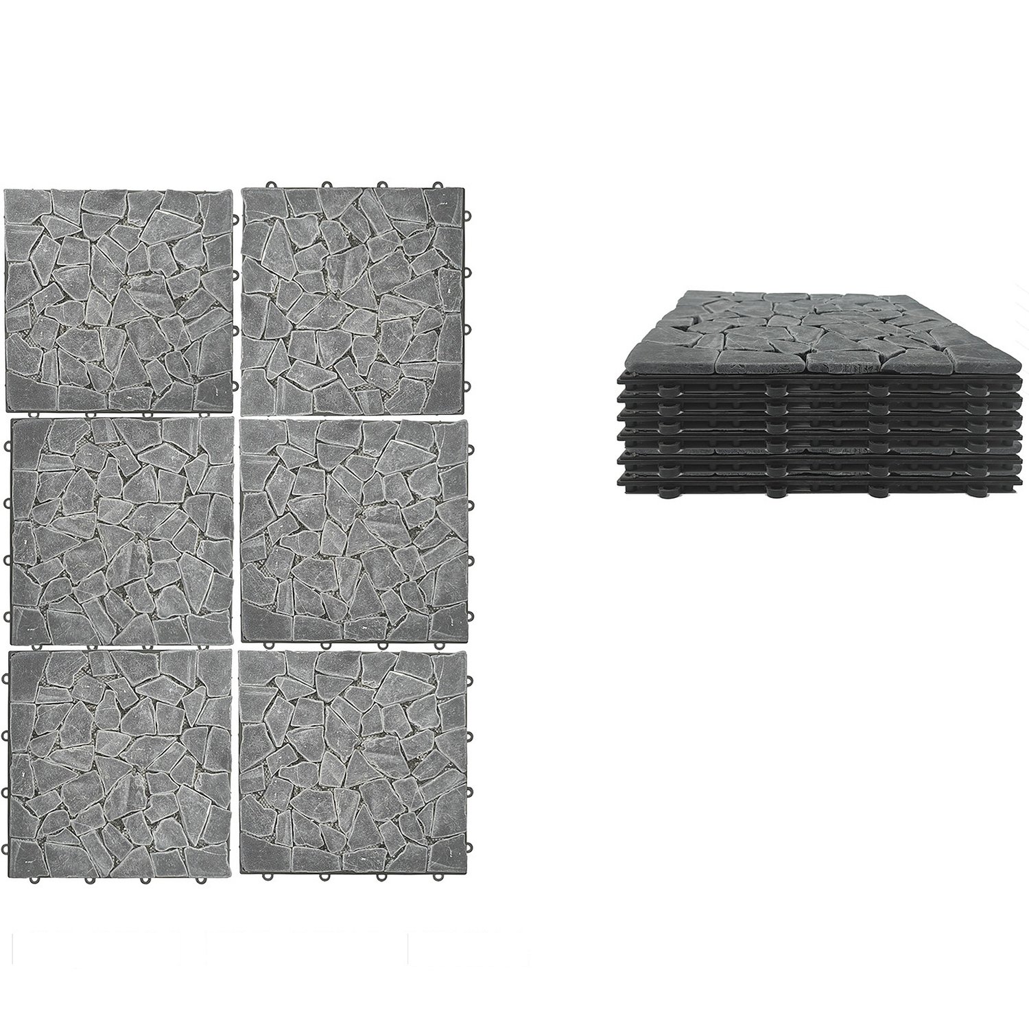 Σετ πλακιδίων δαπέδου από πέτρα σε μαύρο χρώμα. Οι διαστάσεις κάθε πλακιδίου είναι 30.5×30.5x2cm. Ιδανικό για δημιουργία εντυπωσιακών εξωτερικών και εσωτερικών χώρων.