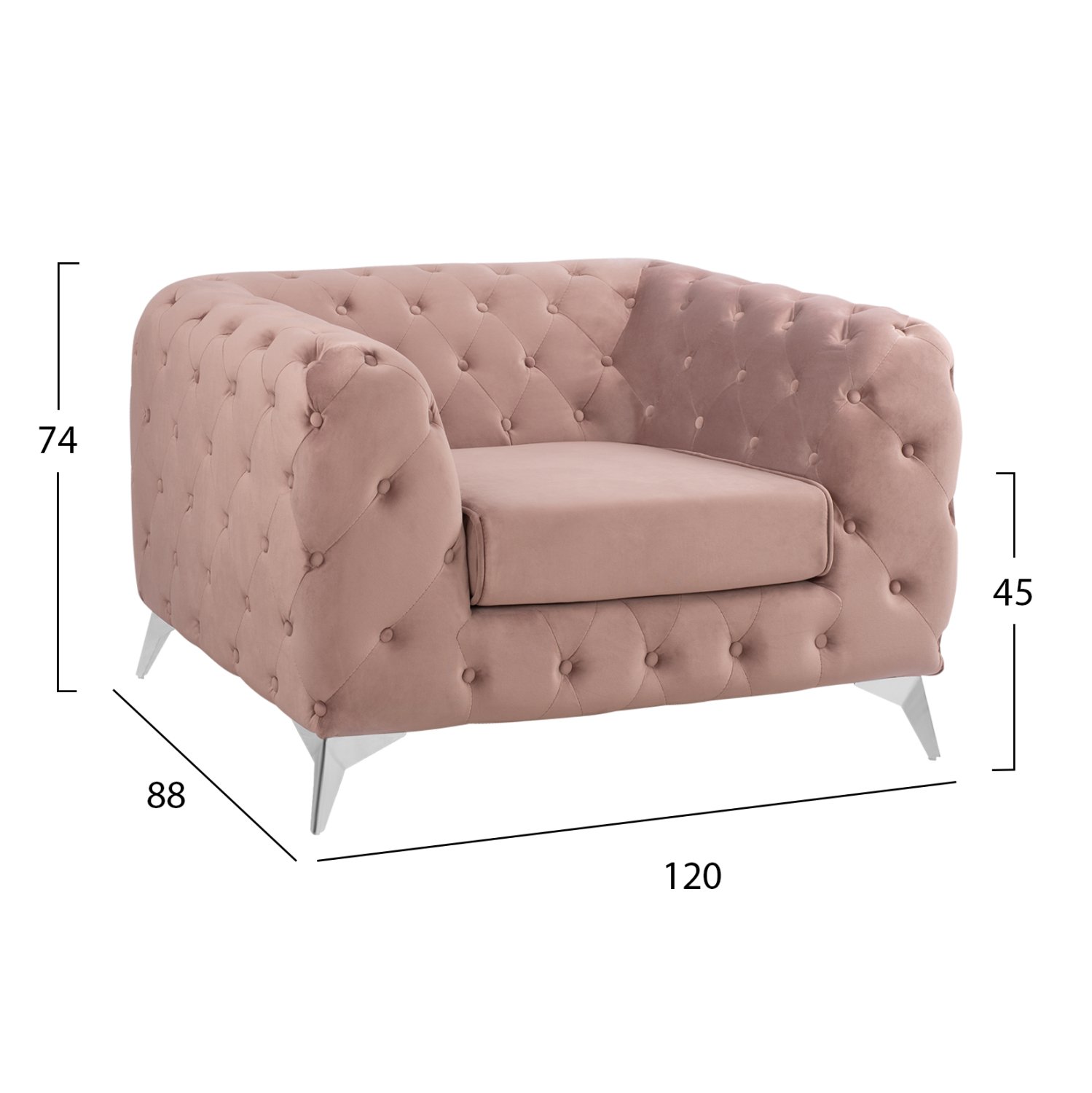Η πολυθρόνα ΗΜ3130.05 σε ΣΑΠΙΟ ΜΗΛΟ χρώμα με μεταλλικά πόδια σε ασημί χρώμα είναι πανέμορφη. Το χαρακτηριστικό που κάνει αυτή την πολυθρόνα να ξεχωρίζει είναι ότι η τεχνοτροπία της είναι σε στυλ Chesterfield, πράγμα που δίνει την αίσθηση κύρους και πολυτέλειας οπουδήποτε κι αν χρησιμοποιηθεί, ενώ η επένδυση με βελούδινο ύφασμα σε όλη την πολυθρόνα και η βαθιά καπιτονέ τεχνοτροπία τόσο στην κοντή πλάτη όσο και στα φαρδιά μπράτσα, υπηρετεί ακριβώς το στυλ Chesterfield.