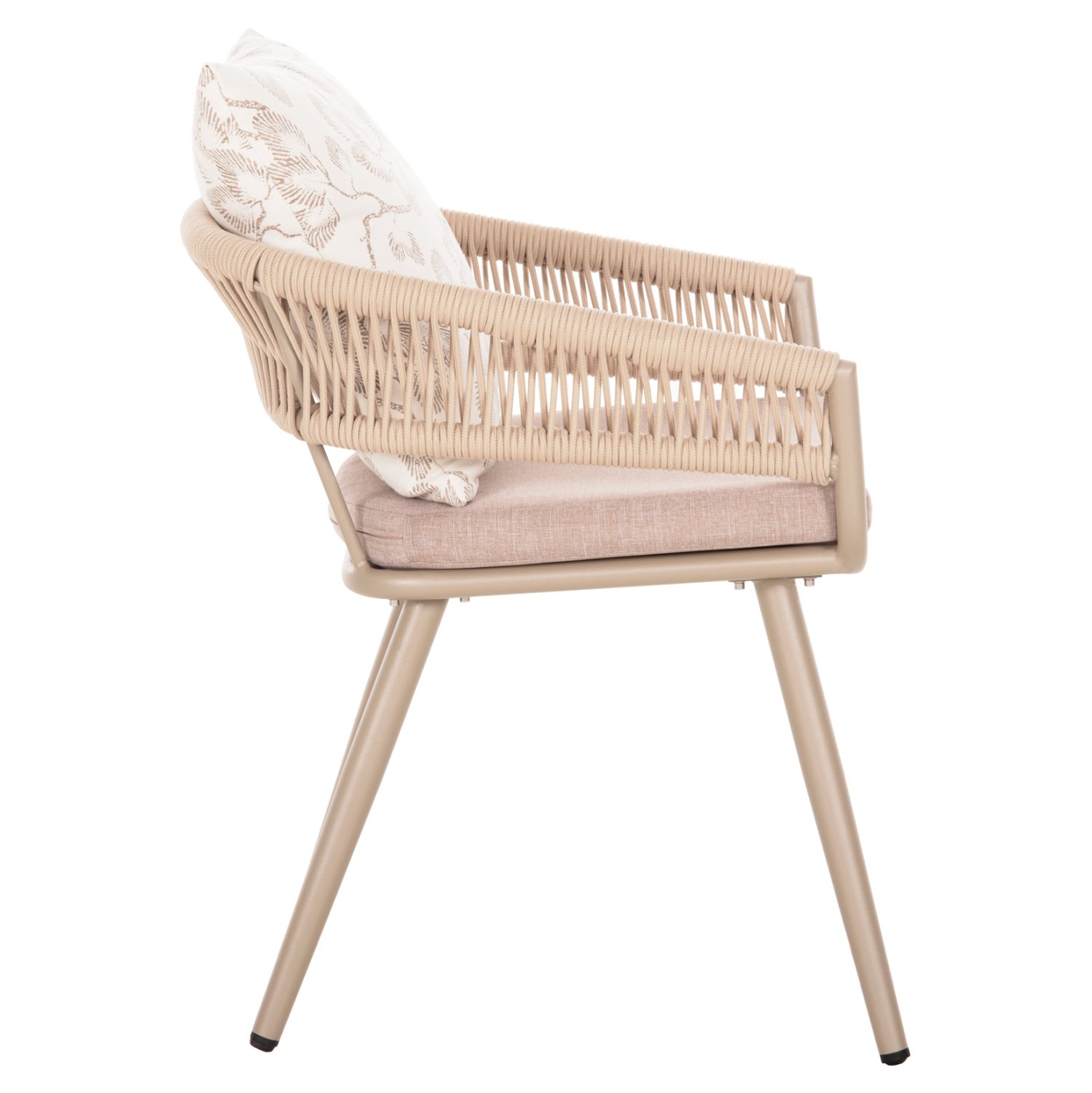 Η πολυθρόνα αλουμινίου CAMDEN σε ΚΑΠΟΥΤΣΙΝΟ χρώμα δεν έχει ξεχωριστά μπράτσα αλλά η πλάτη είναι ημικυκλική αγκαλιάζοντας το σώμα. Πρόκειται για μια πανέμορφη πολυθρόνα με χαμηλή πλάτη από συνθετικό φαρδύ πολυεστερικό σχοινί (terylene) σε ίδιο χρώμα. Το ιδιαίτερο χαρακτηριστικό αυτής της πολυθρόνας είναι ότι διαθέτει αναπαυτικά μαξιλάρια (με φερμουάρ) τόσο στο κάθισμα σε ΣΑΜΠΑΝΙ χρώμα, όσο και στην πλάτη σε εκρού χρώμα με σχέδιο PRINT.