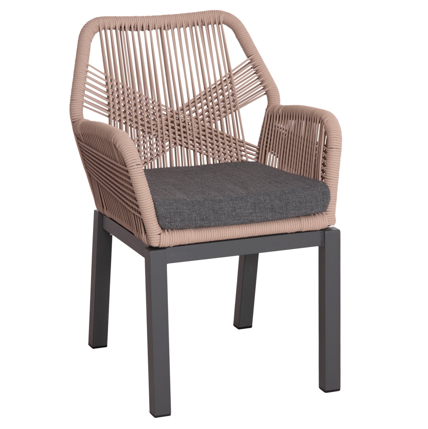 Η πολυθρόνα HOWARD έχει ΑΝΘΡΑΚΙ σκελετό αλουμινίου και αναπαυτικό μαξιλάρι στο κάθισμα σε ίδιο χρώμα. Η πλάτη και τα μπράτσα είναι από πλεκτό σχοινί TEXTILENE σε ΜΠΕΖ χρώμα. Ιδανική για χώρους εστίασης αλλά και για το σπίτι σας, θα σας χαρίσει άνεση και ξεκούραση με την μέγιστη δυνατή ποιότητα υλικών και φινιρίσματος.