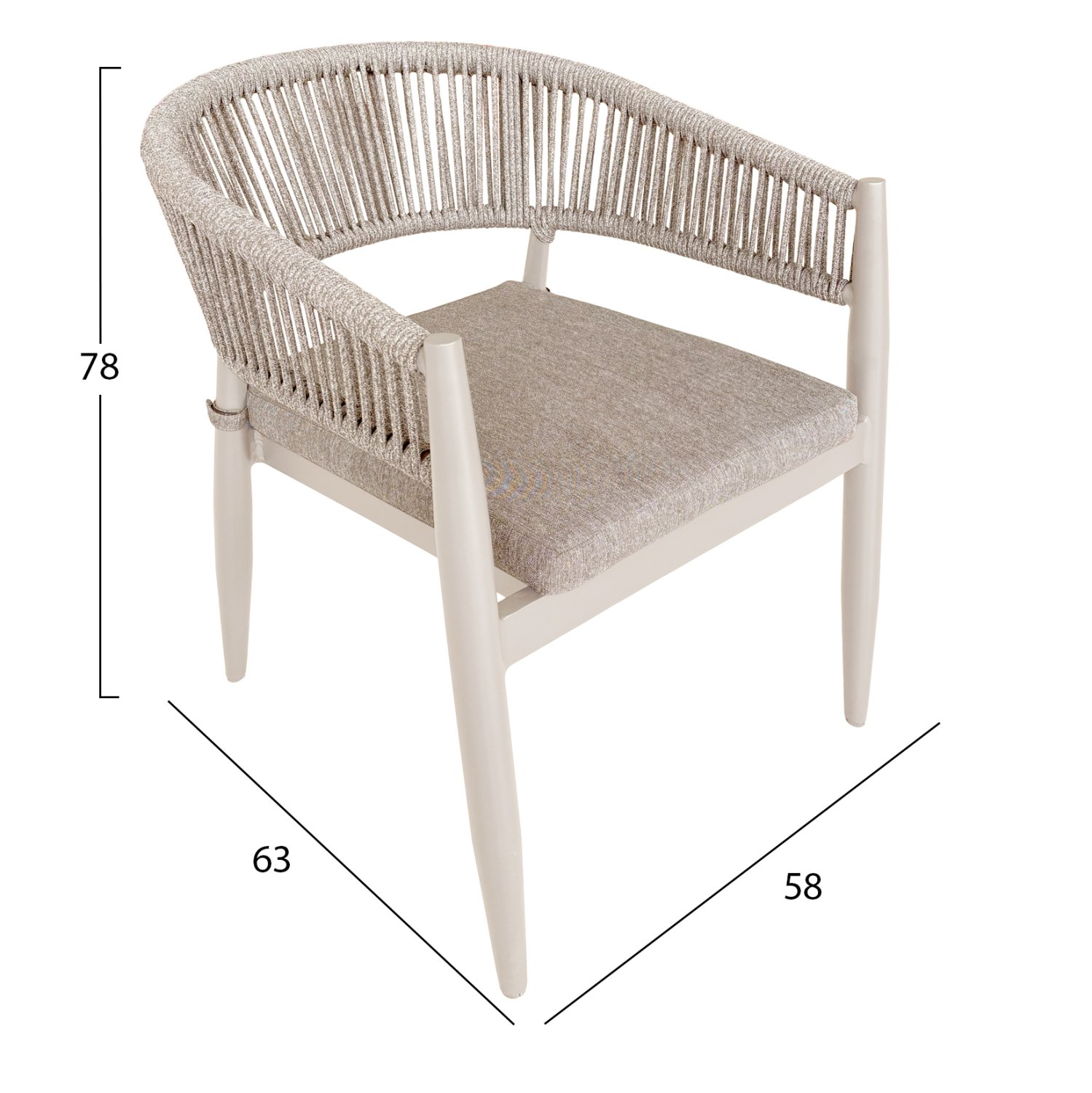 • Ημικυκλική πλάτη από σχοινί σε σαμπανί απόχρωση για άνεση και ιδιαίτερη αισθητική.