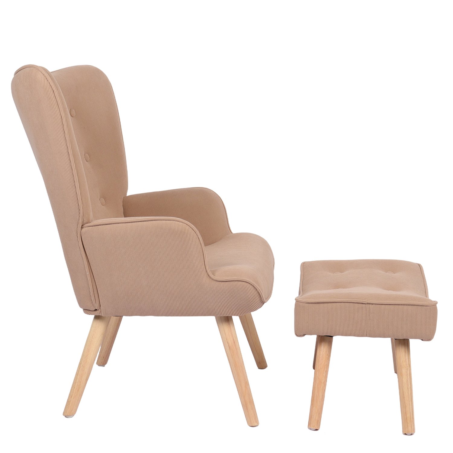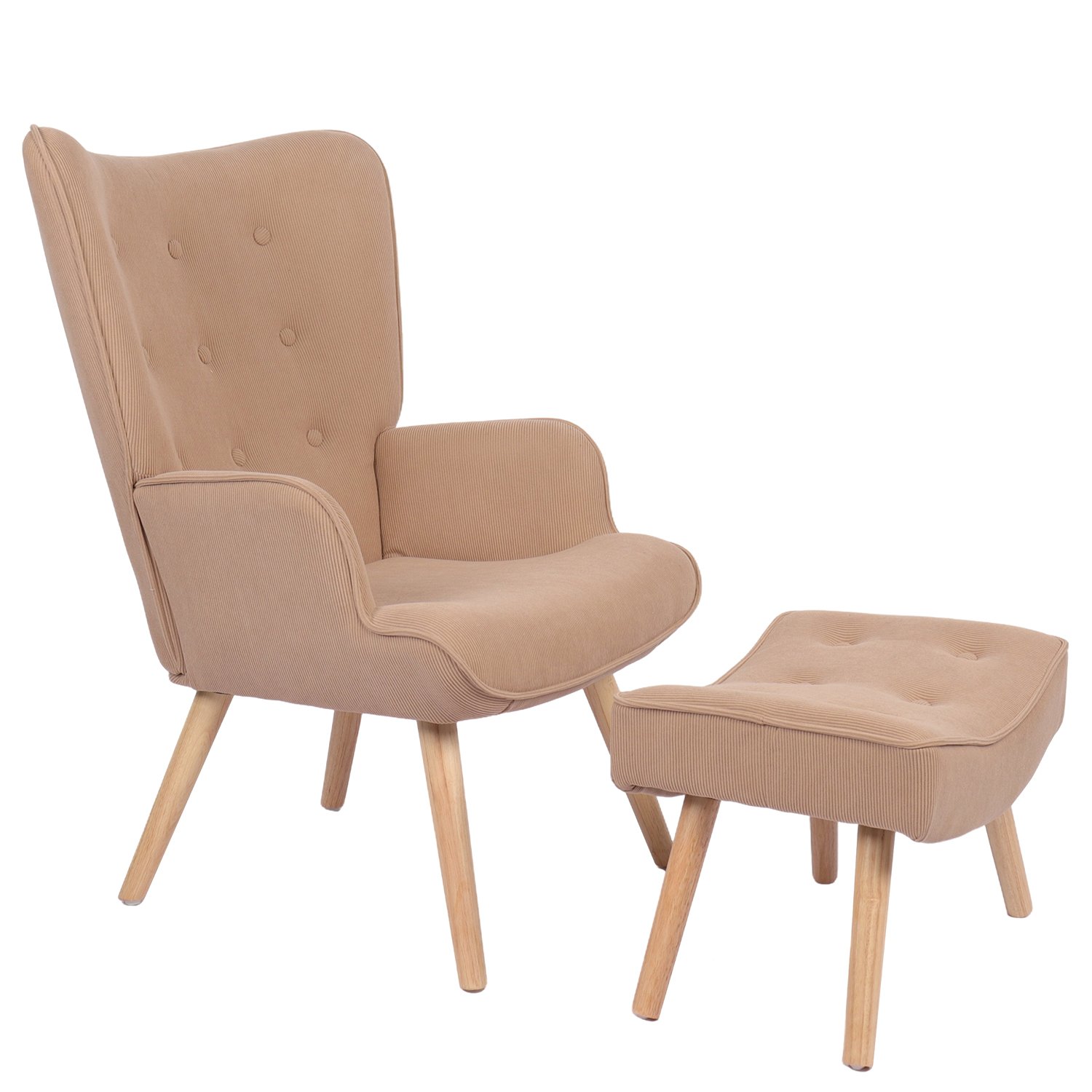 Πολυθρόνα Μπερζέρα Με Υποπόδιο ArteLibre ANIDORI Ανοιχτό Καφέ Ύφασμα/Ξύλο 73x69x96cm