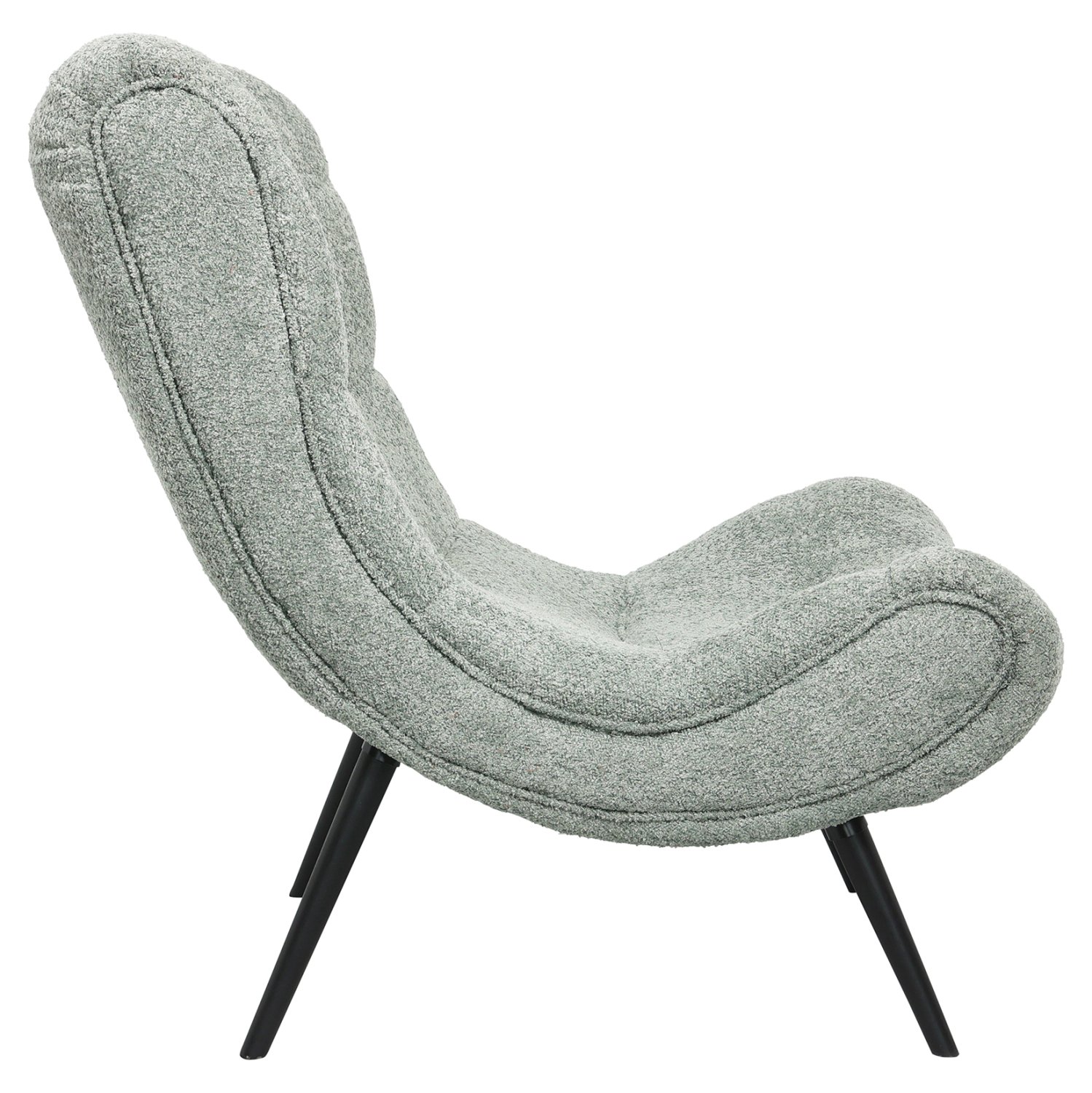 Ολόκληρη η επένδυση της πολυθρόνας έχει γίνει με εξαιρετικής ποιότητας ΜΠΟΥΚΛΕ ύφασμα. Μπουκλέ λέγεται οποιοδήποτε ύφασμα που έχει κόμπο-μπούκλα στην ύφανσή του. Κατασκευάζεται από σχεδόν όλες τις πρώτες ύλες (αν και συνήθως είναι συνθετικό) με ειδικές κλωστές με κόμπους ή πολύ στριμμένα νήματα, έτσι ώστε να έχει σγουρή επιφάνεια. Δεν τσαλακώνει και μπορεί να είναι μονόχρωμο, μελανζέ ,καρώ ή τουιντ.