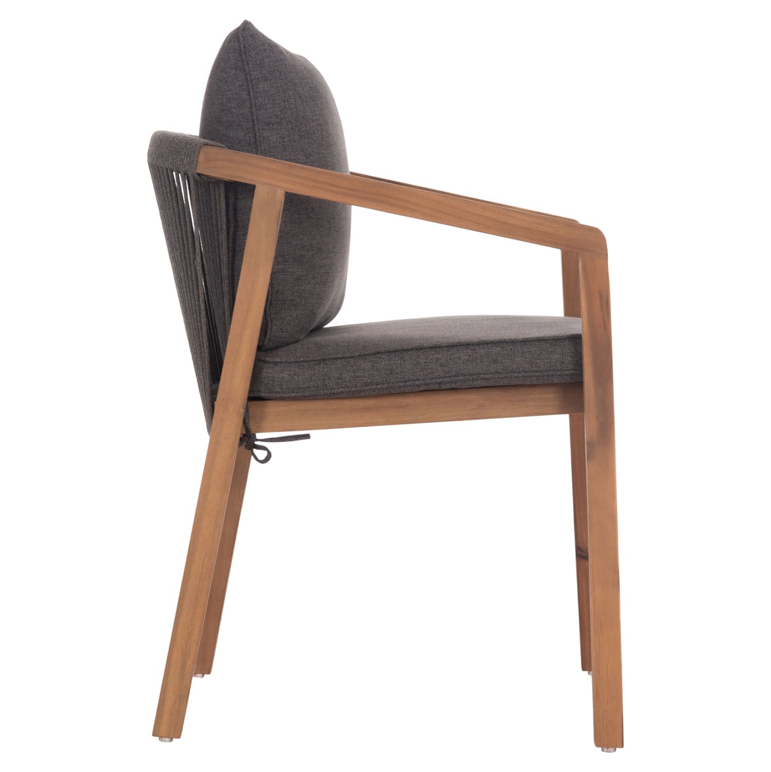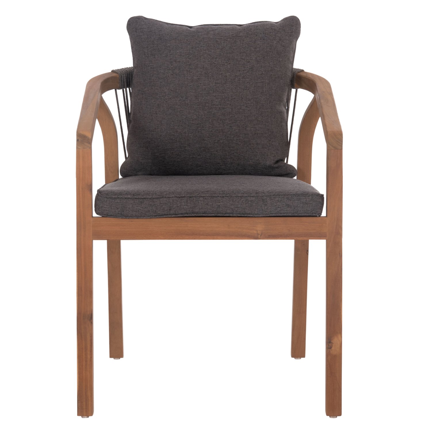 Η πολυθρόνα τραπεζαρίας εξωτερικού χώρου CONTREL είναι κατασκευασμένη από ποιοτικό ξύλο ακακίας και σχοινί σε ΓΚΡΙ χρώμα. Το κάθισμα είναι από ξύλο ενώ στην πλάτη υπάρχει η επένδυση με το σχοινί. Η πολυθρόνα διαθέτει μαξιλάρια σε ΓΚΡΙ χρώμα τόσο στο κάθισμα όσο και στην πλάτη.