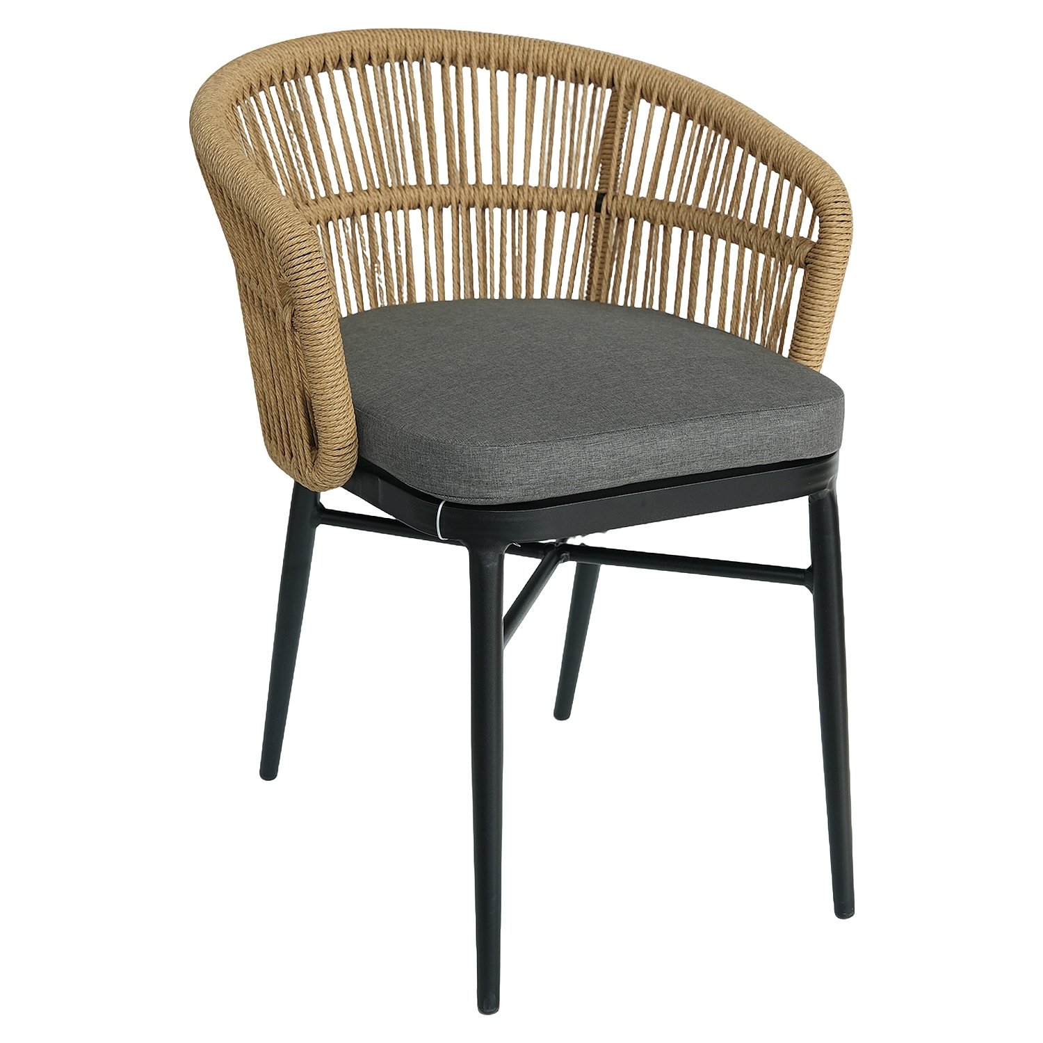 Η πολυθρόνα κήπου ArteLibre ARUBA σε μαύρο και φυσικό συνδυασμό είναι ιδανική για κομψούς εξωτερικούς χώρους. Ο σκελετός της είναι κατασκευασμένος από αλουμίνιο με διαστάσεις Φ28xT1.5mm και Φ25xT1.2mm, προσφέροντας μια ισχυρή και ανθεκτική κατασκευή. Η πλάτη διαθέτει στριφτό rattan PE διαμέτρου Φ4.5mm που προσφέρει άνεση και στυλ, ενώ το μαξιλάρι πάχους 5cm προσθέτει επιπλέον άνεση. Το φινίρισμα επιφάνειας με χρωματισμένη επικάλυψη εξασφαλίζει αντοχή σε διάφορες καιρικές συνθήκες και ευκολία στη συντήρηση. Ιδανική για ιδιωτικούς και επαγγελματικούς χώρους όπως καφετέριες και εστιατόρια, η πολυθρόνα προσφέρει μια πολυτελή και πρακτική λύση για κάθε εξωτερικό περιβάλλον.
