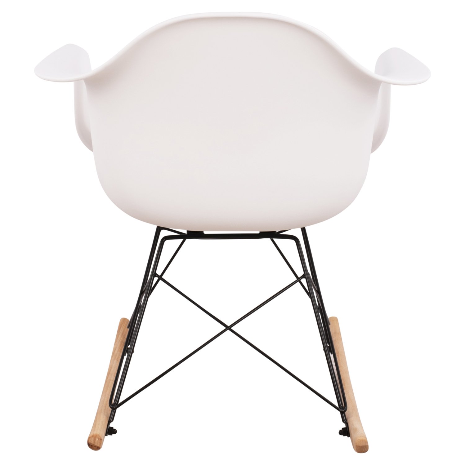 Η κουνιστή πολυθρόνα MIRTO είναι ακριβώς αυτό που ονειρεύονται οι περισσότεροι! Μοντέρνα, άνετη και….κουνιστή! Το κυρίαρχο χρώμα είναι το ΛΕΥΚΟ, ενώ τα κυρτά πόδια είναι σε φυσικό χρώμα ξύλου. Το κάθισμα της πολυθρόνας είναι «χυτό» σε ένα κομμάτι (στυλ μπάκετ) με βαθύ κάθισμα και ψηλά μπράτσα, ενώ η πλάτη είναι μεσαίου ύψους. Η σύνδεση του καθίσματος με τα καμπυλωτά ξύλινα πόδια, γίνεται με έναν μαύρο μεταλλικό σκελετό που καταλήγει σε 4 μεταλλικά πόδια.