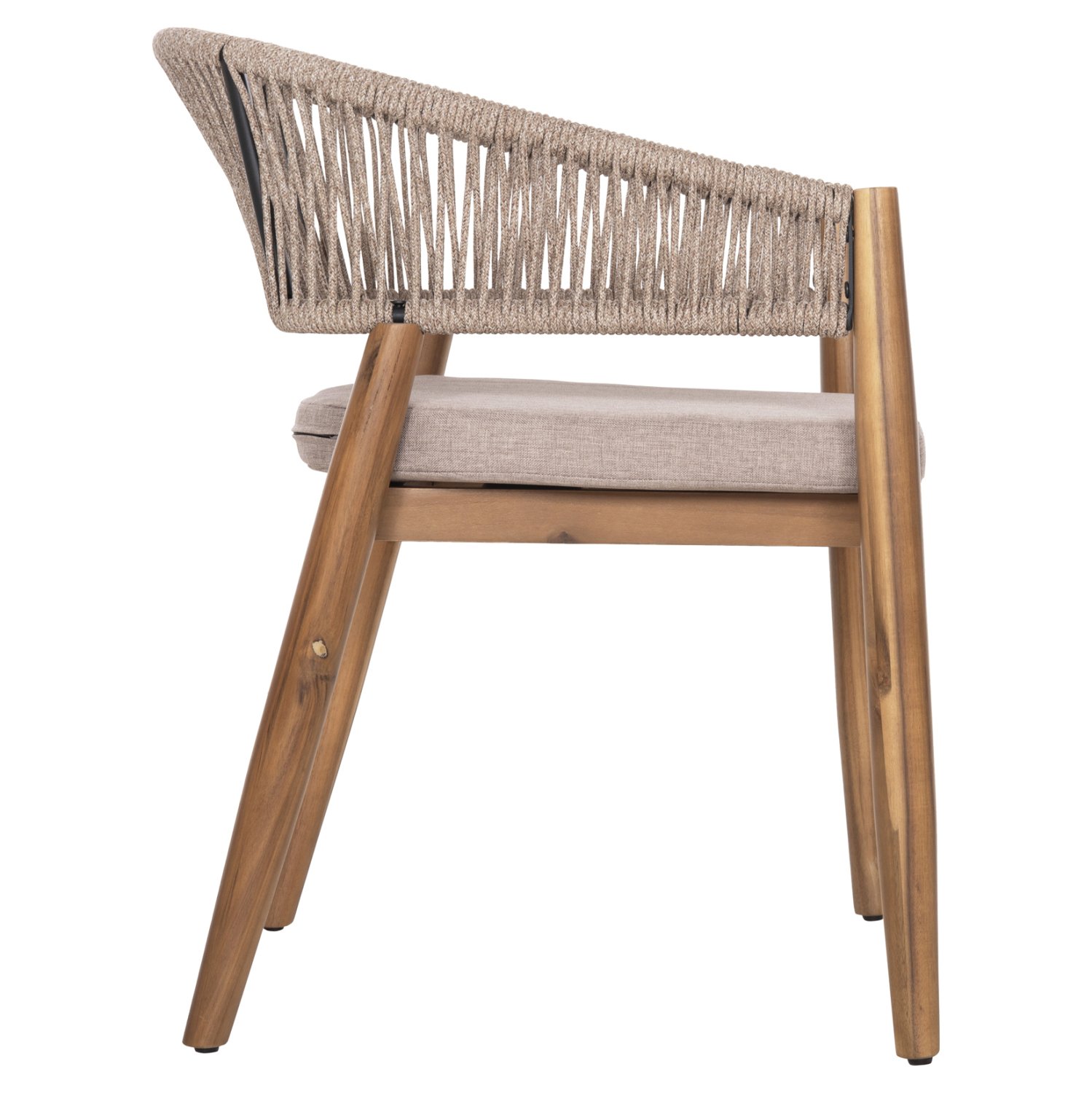 Η πολυθρόνα τραπεζαρίας εξωτερικού χώρου NAVAN συνδυάζει αρμονικά διαφορετικά υλικά κατασκευής. Τα πόδια είναι από ξύλο ακακίας στο ΦΥΣΙΚΟ του χρώμα, ενώ ο σκελετός της πλάτης είναι μεταλλικός με πλέξη από nylon σχοινί σε ΜΠΕΖ χρώμα. Το κάθισμα διαθέτει μαξιλάρι με πολυεστερικό ύφασμα επίσης σε ΜΠΕΖ χρώμα. Οι σχεδιαστικές γραμμές είναι κομψές και με γνώμονα την άνεση του χρήστη και θα αποτελέσει το κέντρο ενδιαφέροντος οπουδήποτε και αν τοποθετηθεί, ιδιαίτερα όμως αν συνδυαστεί με το ανάλογο τραπέζι.