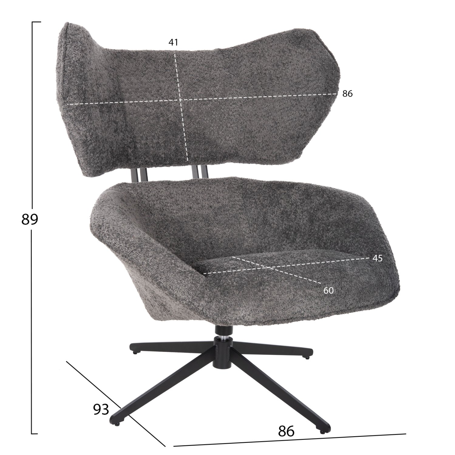 Σας παρουσιάζουμε την περιστρεφόμενη πολυθρόνα BRYLL σε ΓΚΡΙ χρώμα που είναι μια από τις καινούργιες προσθήκες στην γκάμα μας. Στηρίζεται σε μια μαύρη μεταλλική τετράνυχη βάση στην οποία είναι τοποθετημένος ο πίρος περιστροφής. Η επένδυση της πολυθρόνας έχει γίνει με υψηλής ποιότητας μπουκλέ ύφασμα και το κάθισμα είναι αναπαυτικό ανταποκρινόμενο στον χαρακτήρα της πολυθρόνας, η οποία είναι μοντέρνα συνδυάζοντας design και άνεση. Τοποθετήστε την δίπλα στο τζάκι, σε ένα παράθυρο ή ακόμα και στο υπνοδωμάτιό σας, και αφεθείτε στην «αγκαλιά» της.