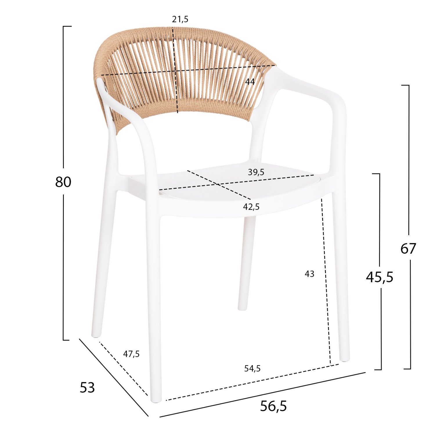Η πολυθρόνα EVA έχει όλα όσα θα θέλατε από ένα τέτοιο έπιπλο. Όλη η πολυθρόνα είναι από μονοκόμματο πολυπροπυλένιο σε ΛΕΥΚΟ χρώμα με ελαφρώς κυρτή πλάτη επενδυμένη με συνθετικό σχοινί σε ΜΠΕΖ χρώμα, και πρακτικά μπράτσα. Όλη η κατασκευή είναι ελαφριά και άνετη, και θα γίνει το αγαπημένο κάθισμα σε όποιο χώρο κι αν τοποθετηθεί χάρη στην πρακτικότητά του. Ιδανική επιλογή και για επαγγελματική χρήση, όπως σε catering κτλ., επειδή είναι στοιβαζόμενη.