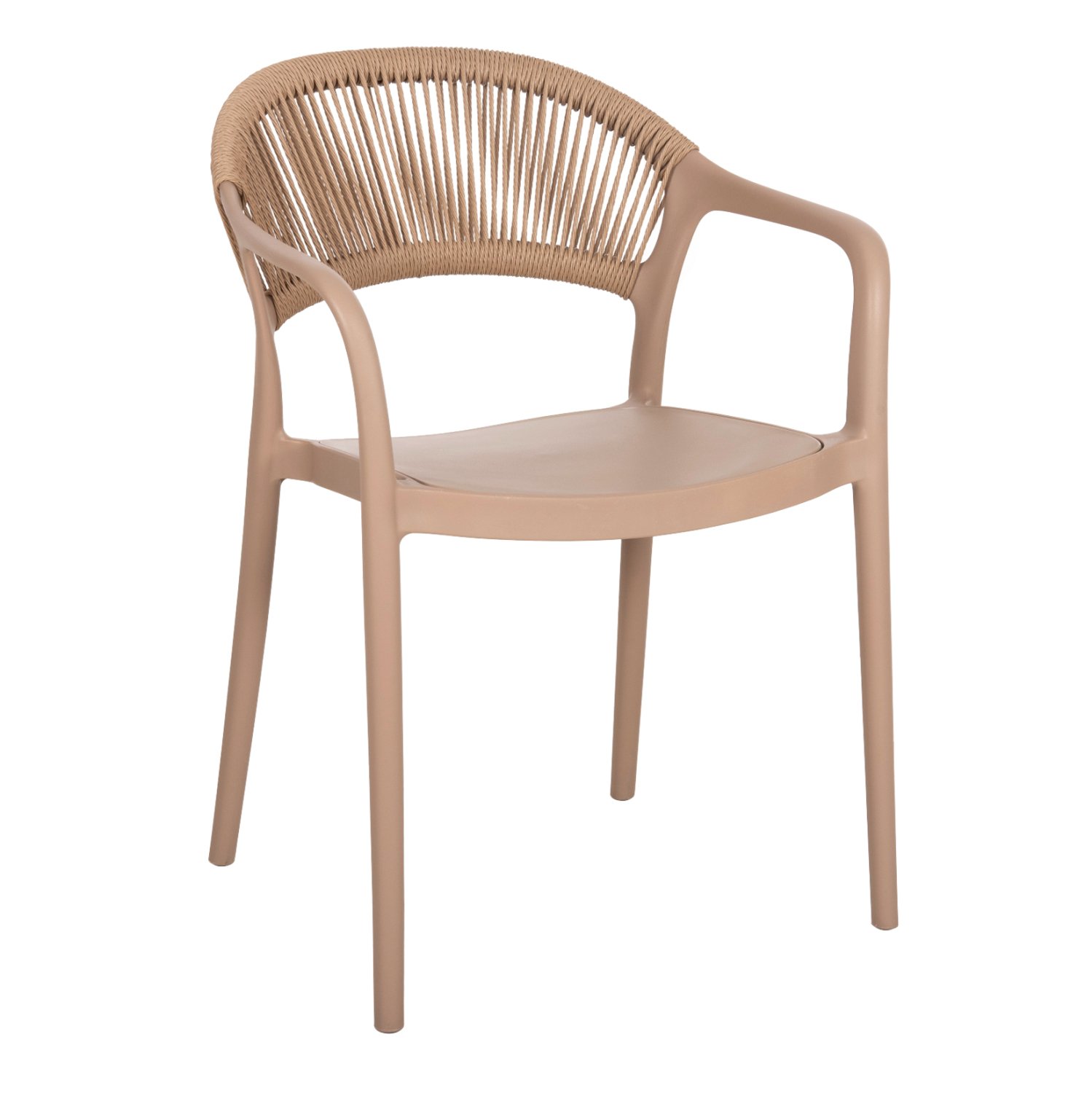 Η πολυθρόνα EVA έχει όλα όσα θα θέλατε από ένα τέτοιο έπιπλο. Όλη η πολυθρόνα είναι από μονοκόμματο πολυπροπυλένιο σε ΚΑΠΟΥΤΣΙΝΟ χρώμα με ελαφρώς κυρτή πλάτη επενδυμένη με συνθετικό σχοινί σε ΜΠΕΖ χρώμα, και πρακτικά μπράτσα. Όλη η κατασκευή είναι ελαφριά και άνετη, και θα γίνει το αγαπημένο κάθισμα σε όποιο χώρο κι αν τοποθετηθεί χάρη στην πρακτικότητά του. Ιδανική επιλογή και για επαγγελματική χρήση, όπως σε catering κτλ., επειδή είναι στοιβαζόμενη.