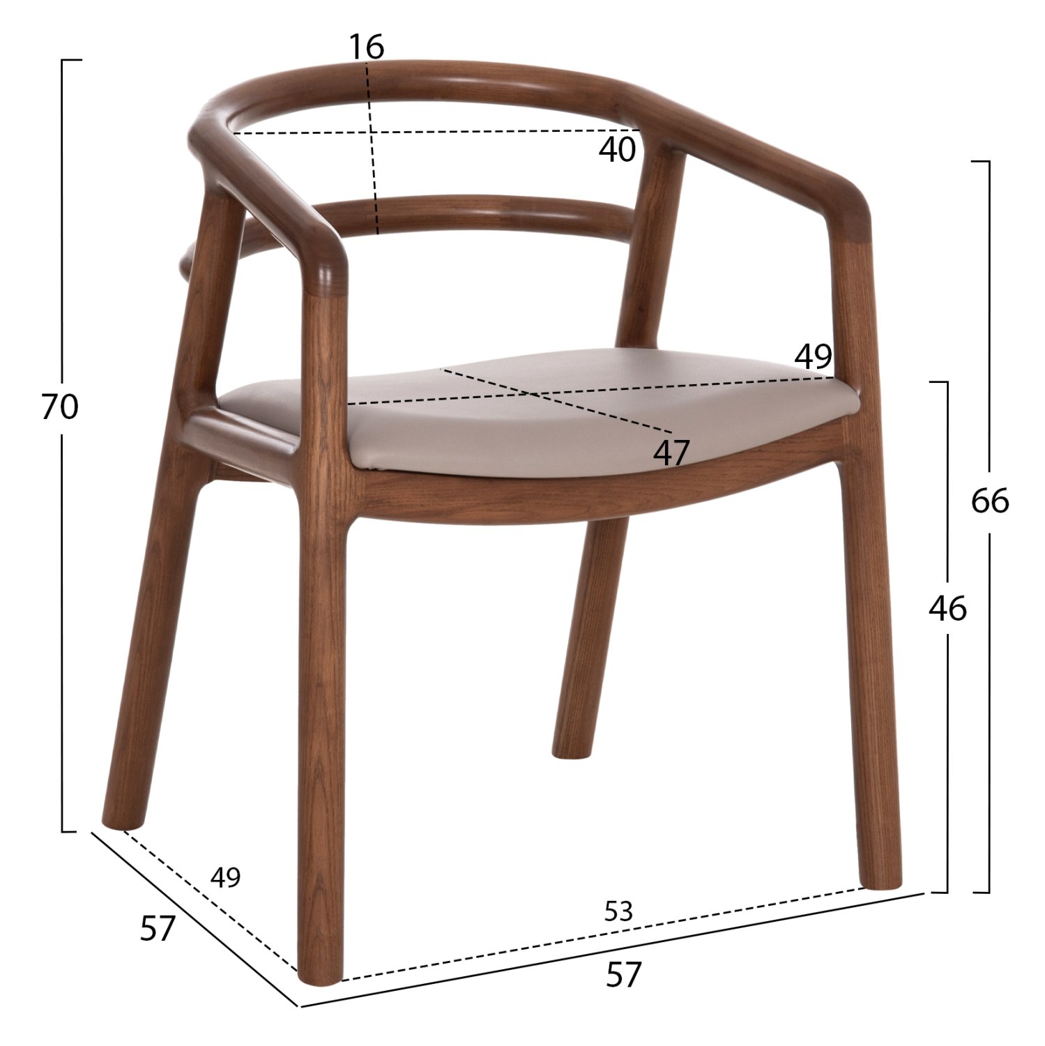 Η EFFY είναι μια premium πολυθρόνα τραπεζαρίας που αποτυπώνει τη σύγχρονη minimal αισθητική μέσα από καθαρές γραμμές και αρμονικές αναλογίες. Ο σκελετός από ξύλο φράξινο σε απόχρωση καρυδί προσδίδει ζεστασιά και διαχρονικό χαρακτήρα, ενώ το κάθισμα με επένδυση PU δέρματος σε μπεζ χρώμα ολοκληρώνει το σύνολο με κομψότητα και ευελιξία στους συνδυασμούς. Η ενιαία σχεδίαση πλάτης και μπράτσων δημιουργεί μια αγκαλιαστή μορφή που συνδυάζει άνεση και αρχιτεκτονική ισορροπία.