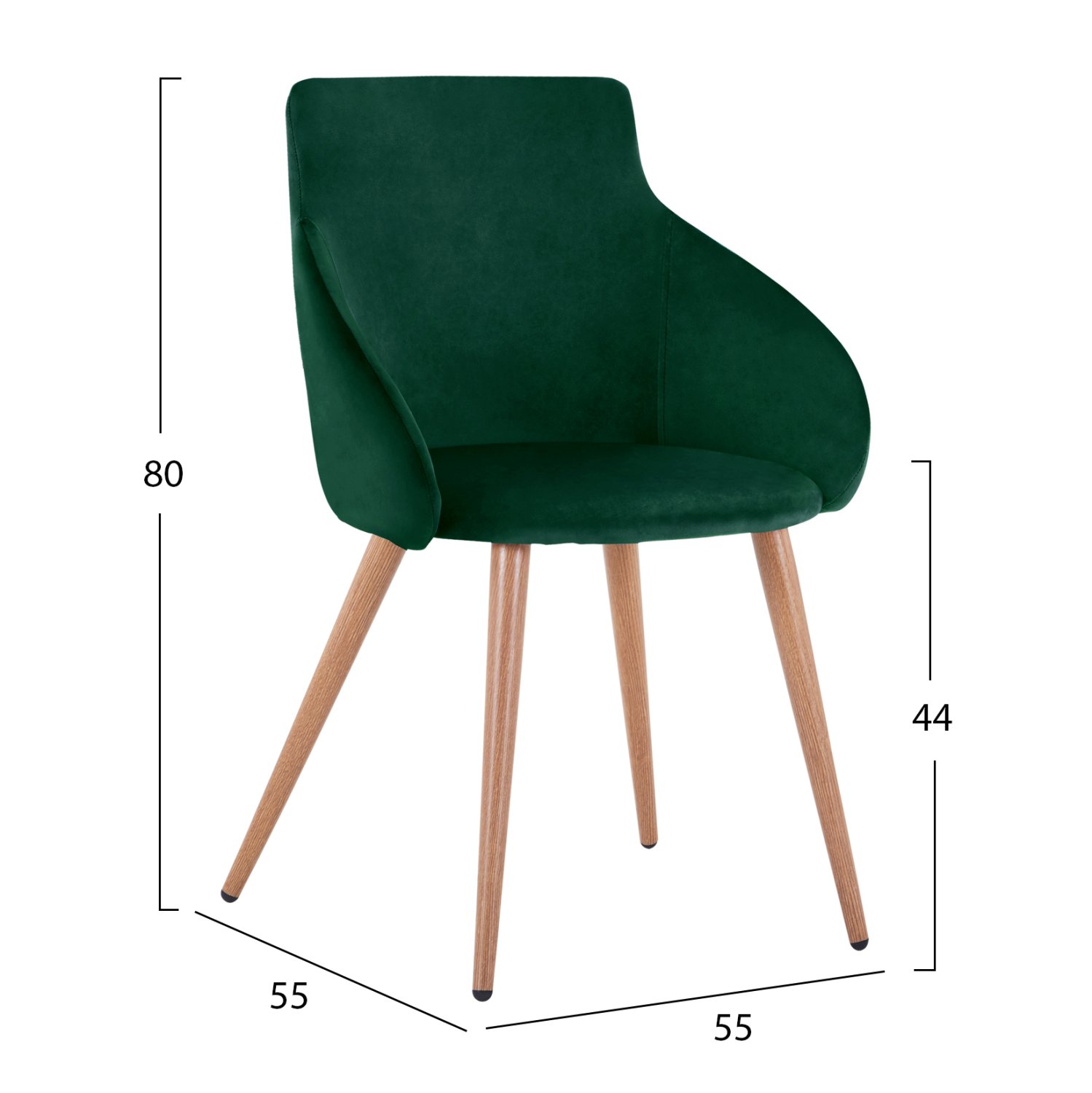 Πολυθρονάκι IVY με μπράτσα επενδυμένο με βελούδο σε κυπαρισσί απόχρωση. Τα πόδια είναι μεταλλικά, βαμμένα έτσι ώστε να αποδίδουν την όψη του ξύλου.