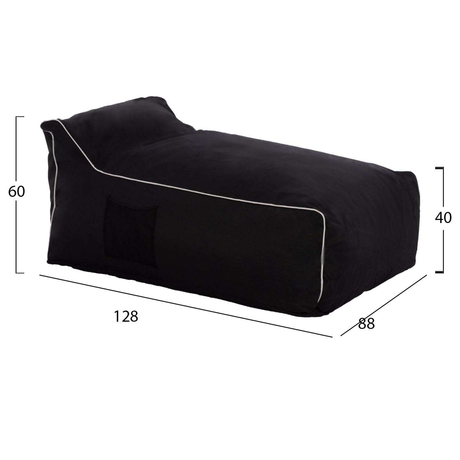 Το ΠΟΥΦ αυτό, σε μαύρο χρώμα, έχει πολύ άνετο και αναπαυτικό «κάθισμα», που προσφέρει τη δυνατότητα να χρησιμοποιηθεί είτε σαν πολυθρόνα, είτε σαν ξαπλώστρα, μιας και έχει σχήμα με προσκέφαλο.