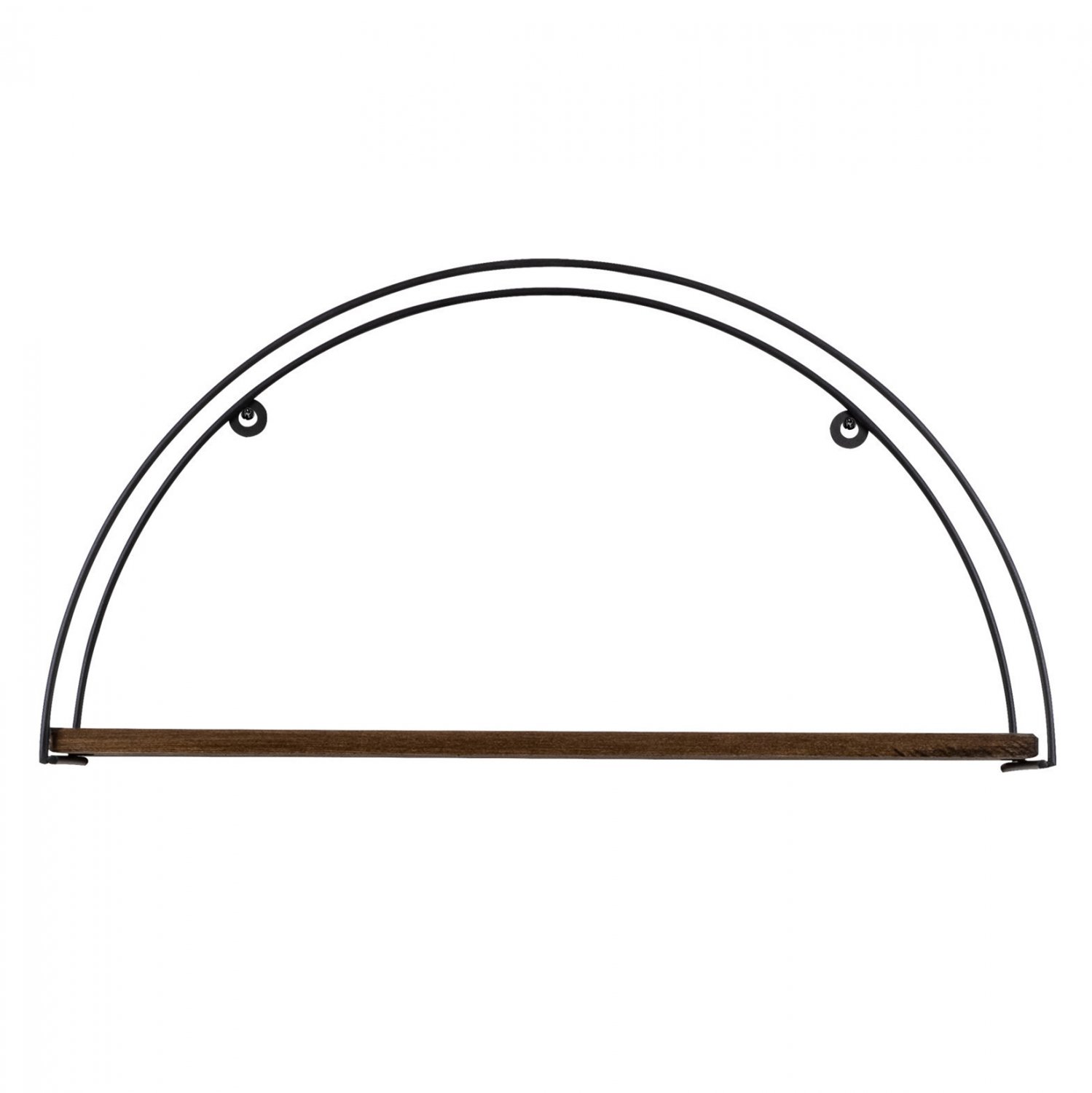Διακοσμητικό ράφι τοίχου από μεταλλικό σκελετό σε μαύρη απόχρωση και ξύλινη βάση σε καρυδί απόχρωση.