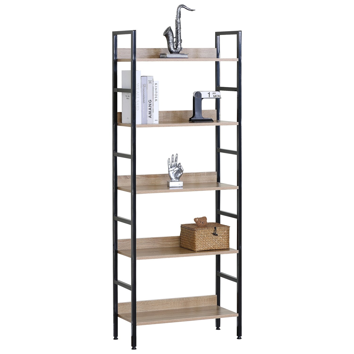 Ραφιέρα ArteLibre TYNDALL Με 4 Ράφια 60X27.6X126cm Δρυς/Μαύρο Μοριοσανίδα/Μέταλλο
