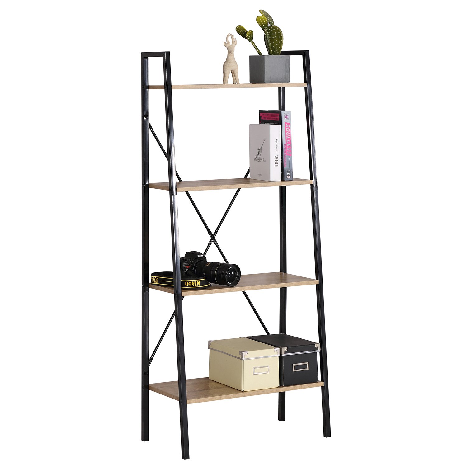 Ραφιέρα ArteLibre DARROW Με 4 Ράφια Δρυς/Μαύρο Μοριοσανίδα/Μέταλλο 29.1×23.5x112cm
