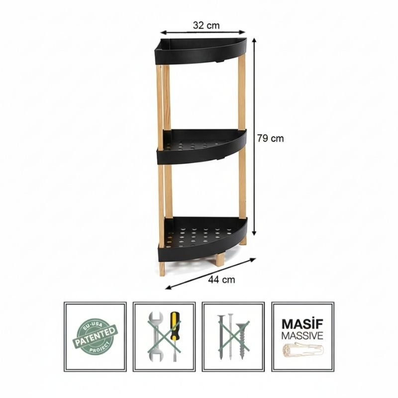 Ραφιέρα δαπέδου γωνιακή πλαστική – ξύλινη χρώμα φυσικό – μαύρο 44x32x79εκ.