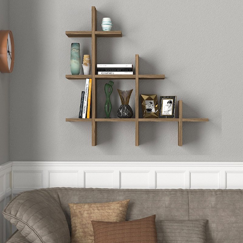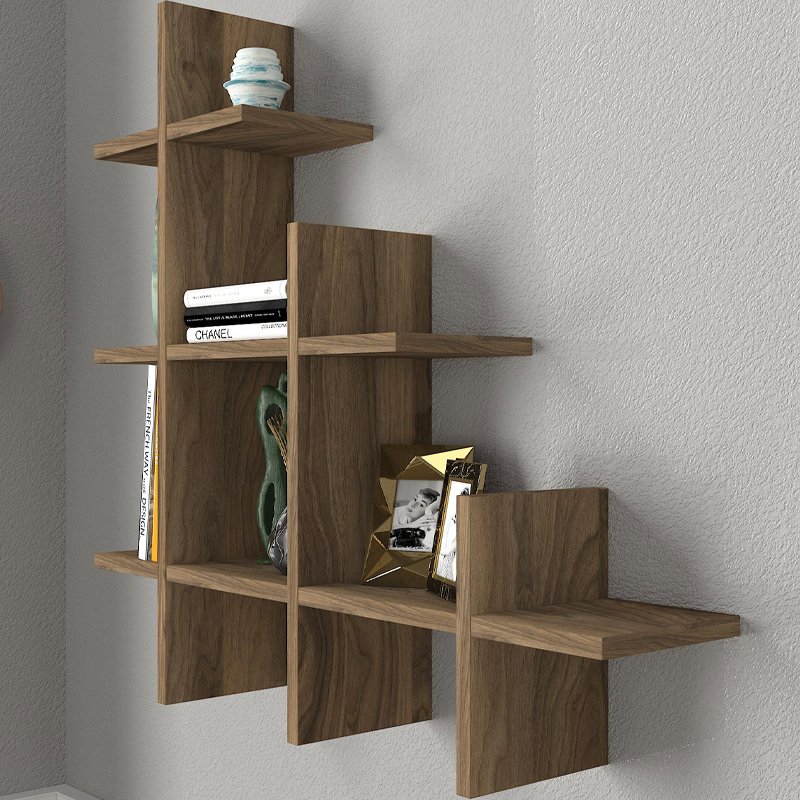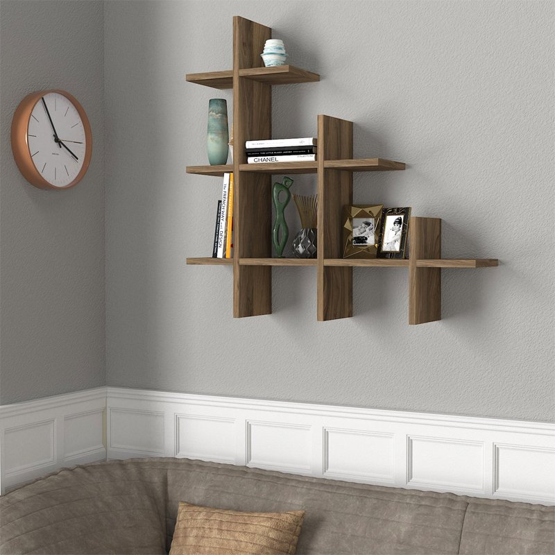 Ραφιέρα τοίχου Juke Megapap από μελαμίνη χρώμα καρυδί 81,8x18x80εκ.