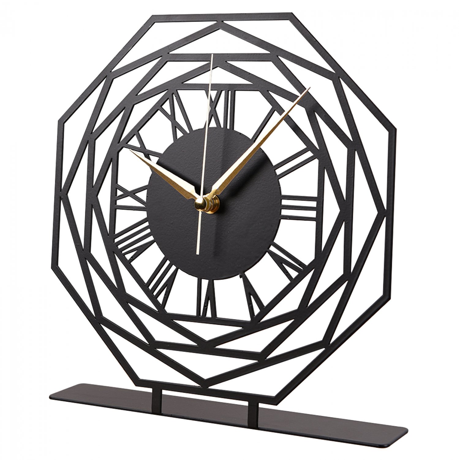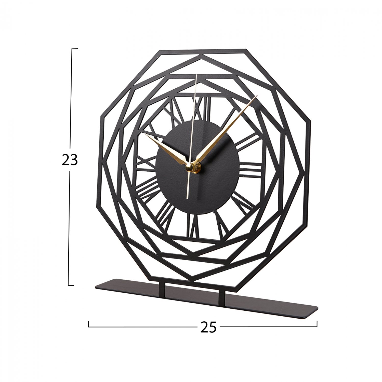 Ρολόι επιτραπέζιο σε μαύρη απόχρωση με χρυσές λεπτομέρειες στους δείκτες.