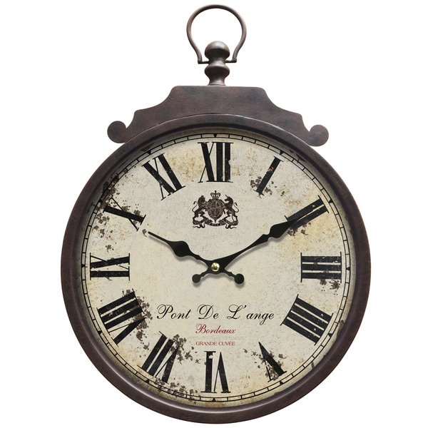 Ρολόι τοίχου μεταλλικό σε σχήμα ρολογιού τσέπης σε κλασικό διαχρονικό σχέδιο με μεγάλα λατινικά νούμερα.
