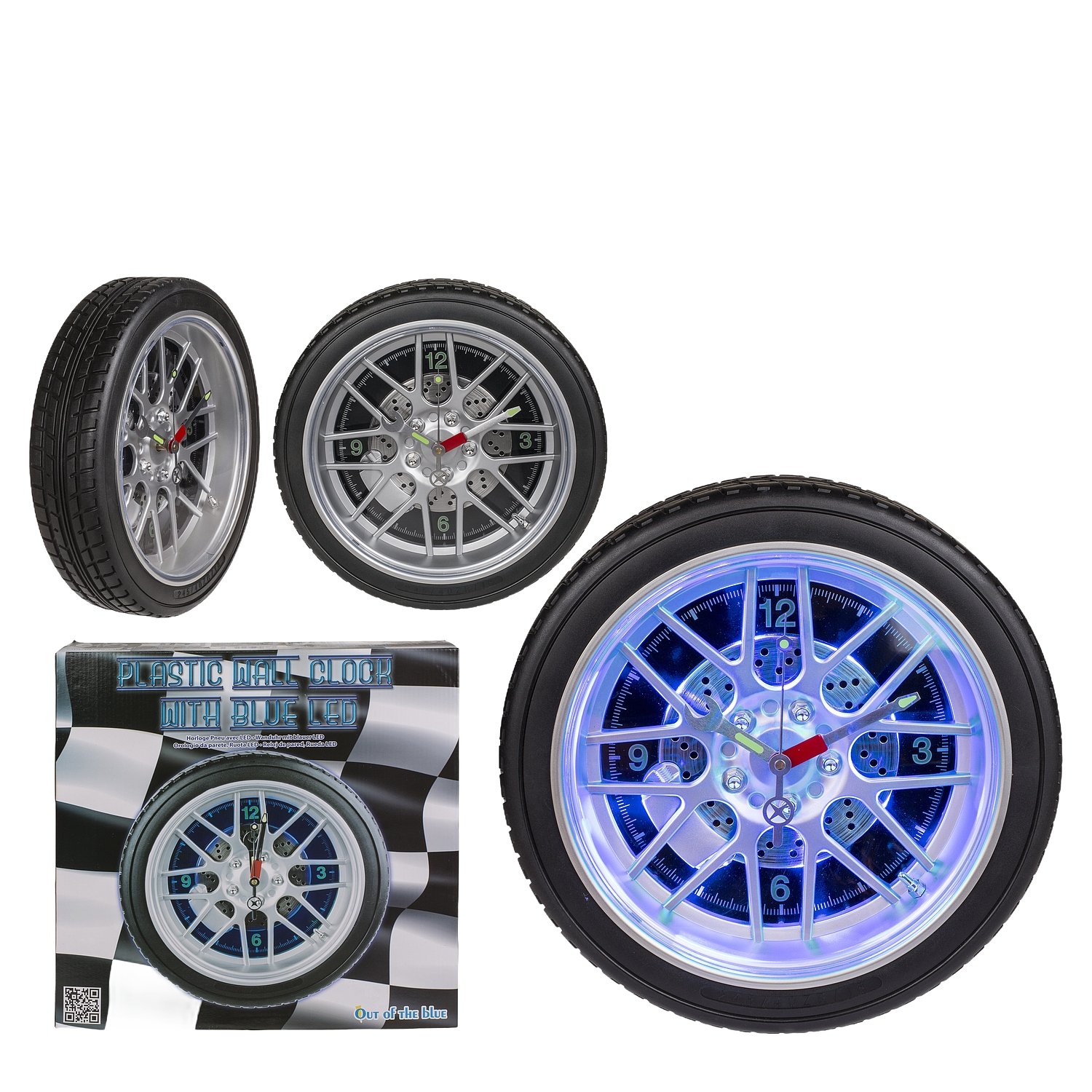 Ρολόι τοίχου ρόδα αυτοκινήτου με 16 LED πλαστικό Φ35cm.