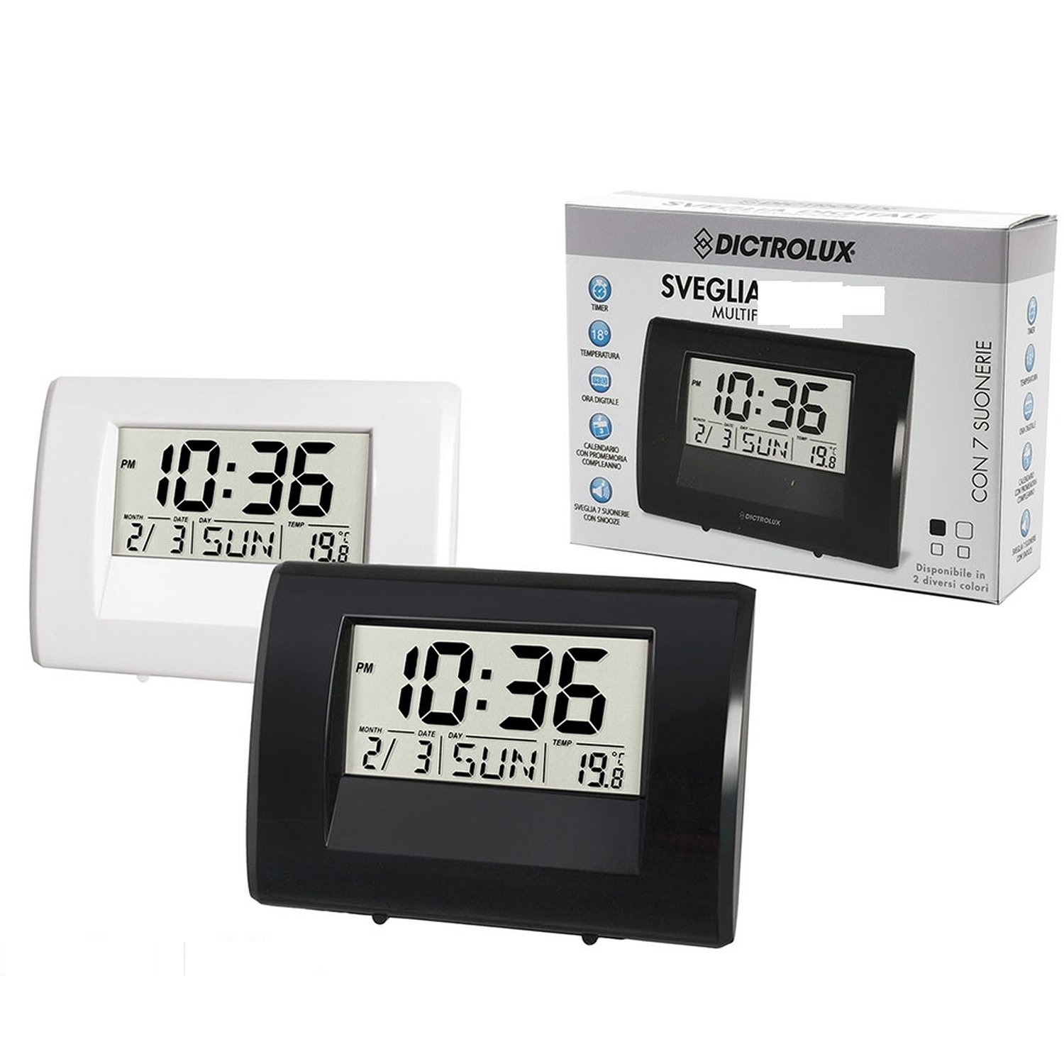 Αυτό το ψηφιακό ρολόι ξυπνητήρι προσφέρει πολλαπλές λειτουργίες όπως ένδειξη ώρας και θερμοκρασίας, καθώς και 7 διαφορετικούς ήχους ξυπνητηριού. Ιδανικό για το κομοδίνο σας, διαθέσιμο σε λευκό και μαύρο.