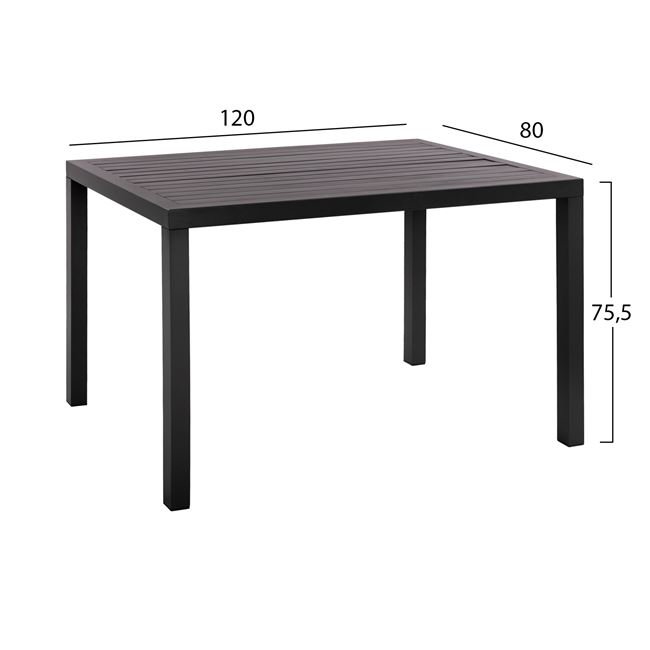 Ένα τραπέζι τραπεζαρίας κατασκευασμένο από αλουμίνιο σε σε ανθρακί απόχρωση,
