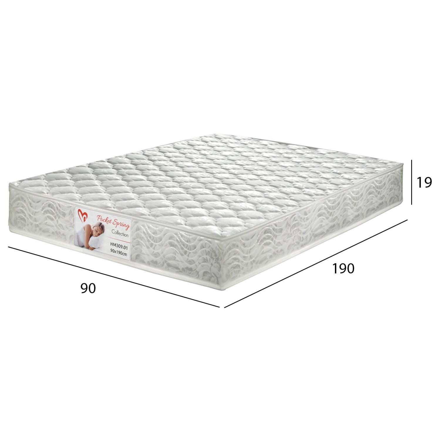 Μονό στρώμα με pocket spring και διπλής όψης. Διαστάσεις: 190×90 εκ.