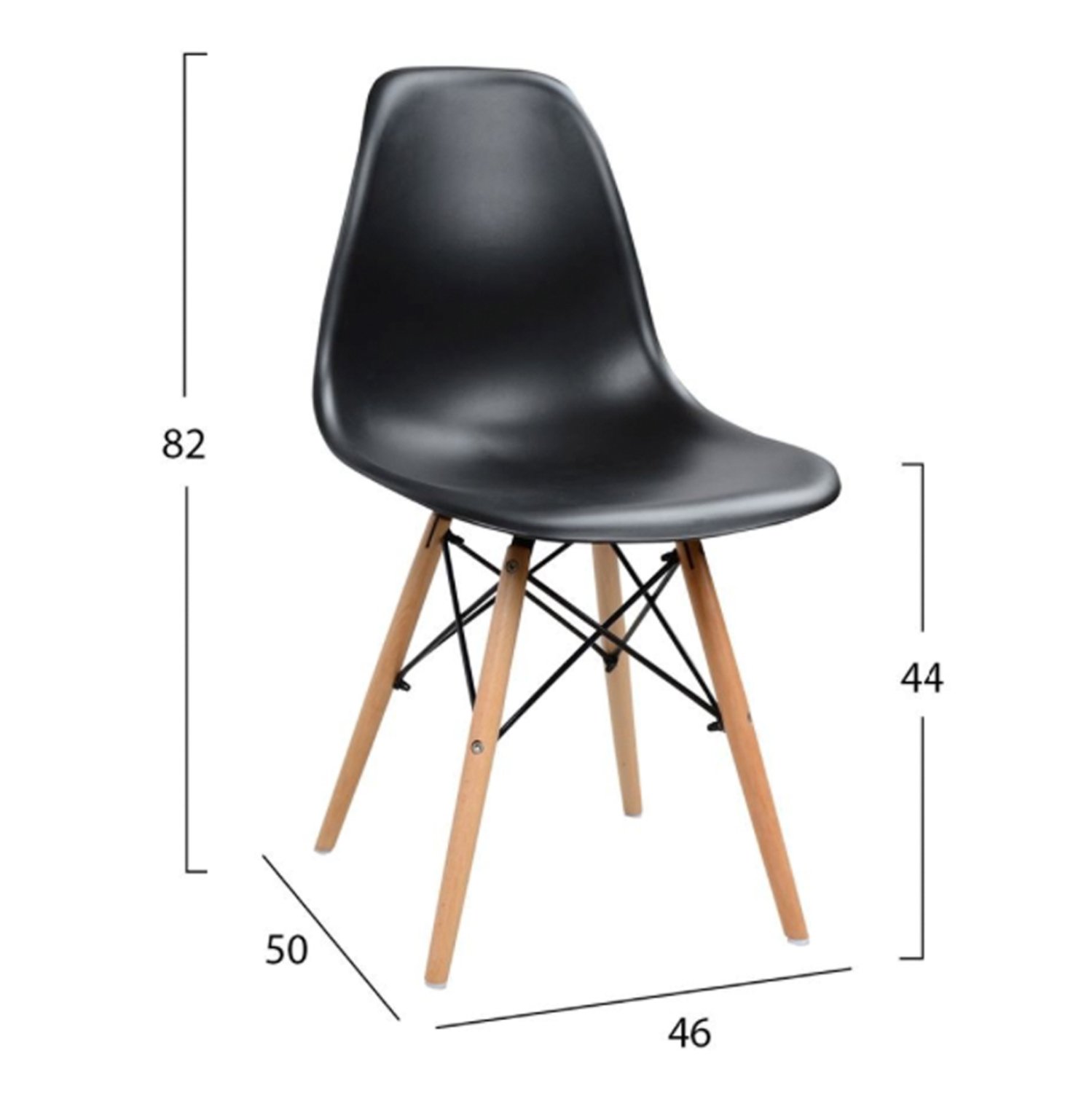 -Και 4 καρέκλες από πολυπροπυλένιο σε mat υφή και μαύρο χρώμα. Τα πόδια της καρέκλας είναι από μασίφ ξύλο.