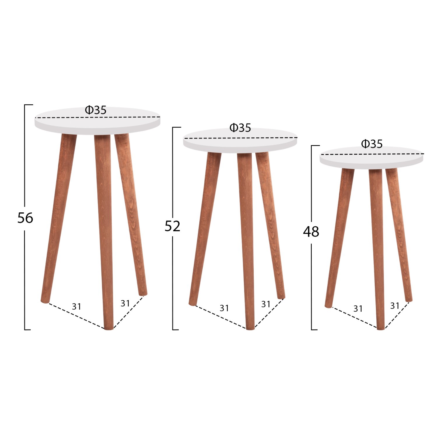 ΗΜ18180.01- Σετ 4τμχ τραπεζάκια σαλονιού. Ένα οβάλ και 3 μικρότερα βοηθητικά σε διαφορετικά ύψη, από μελαμίνη και ξύλο σε sonama και λευκό.